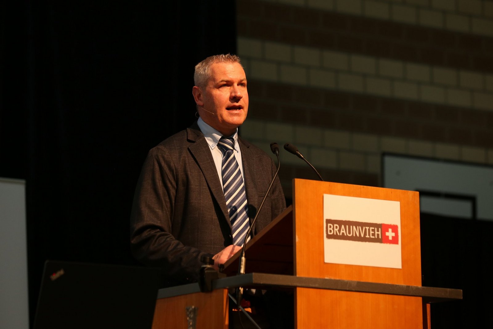 An seiner ersten Delegiertenversammlung als Direktor konnte Martin Rust auf eine Vielzahl von erfolgreichen Verbandsaktivitäten zurückblicken. Von der Tendenz der sinkenden Milchkuhzahlen sei leider auch das Braunvieh betroffen. Die Anzahl weiblicher Herdebuchtiere ging im Jahr 2023 um knapp 1500 Tiere auf 152'235 zurück.