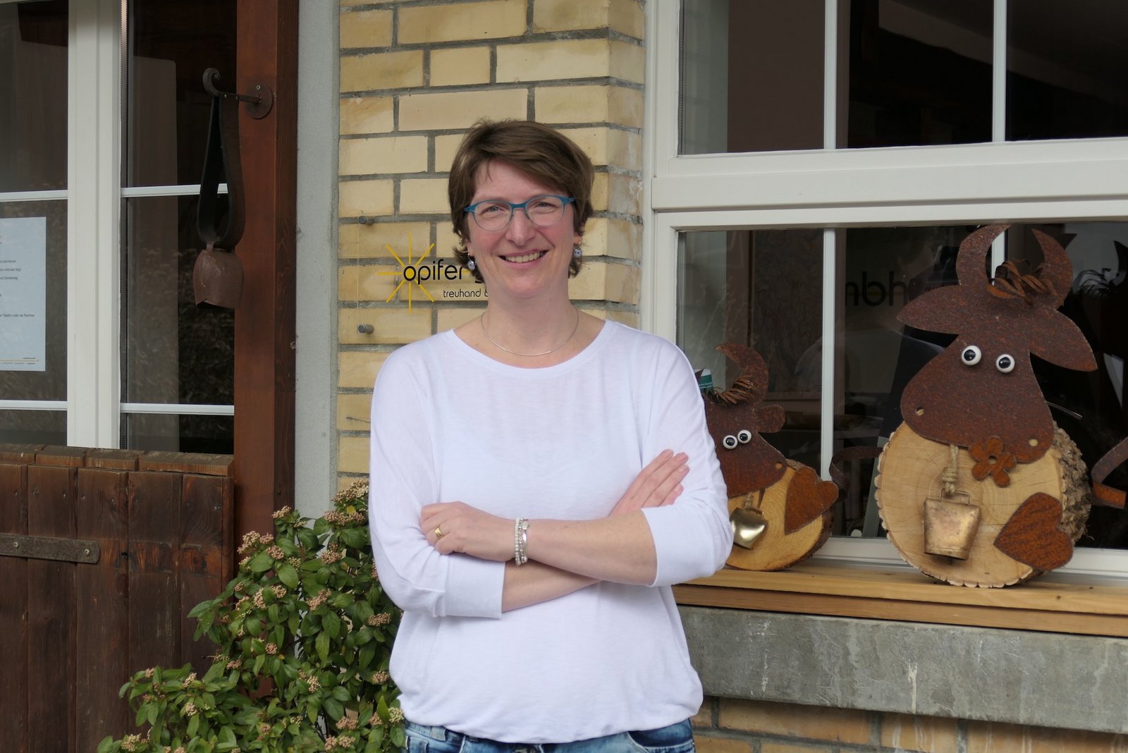 Ein stattlicher Riegelbau im Zürcher Weinland: Wo heute ein Treuhandbüro eingerichtet ist, wurden einst Tiere untergebracht. Wer eintreten will, tut dies noch immer durch die ursprüngliche, hölzerne Stalltüre. Als Klingel dient eine alte Glocke. Hier, im Stallteil ihres Elternhauses in Flaach, arbeitet Sara Fazan mit ihrem Team von fünf weiteren Frauen sowie einem Mann, ihrem Bruder Simon Brandenberger.