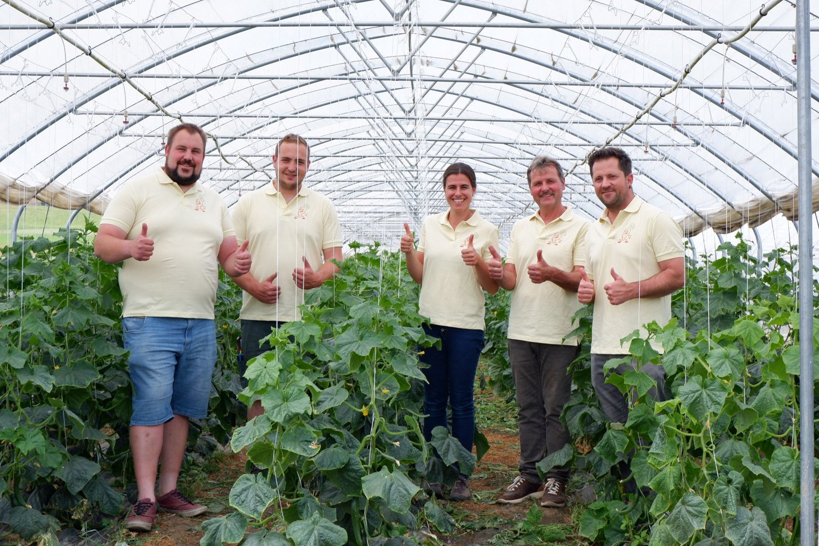 Ein Demo-Feld mit verschiedenen Kulturen erwartet die Besucherinnen und Besucher auch auf dem Betrieb der Familie Feller. Nebst dem Anbau von Gemüse im Freiland und im Gewächshaus liegt der Fokus auf den Kreisläufen zwischen tierischer und pflanzlicher Produktion. So bilden die 14 Mutterkühe einen wichtigen Bestandteil des Betriebskonzepts.