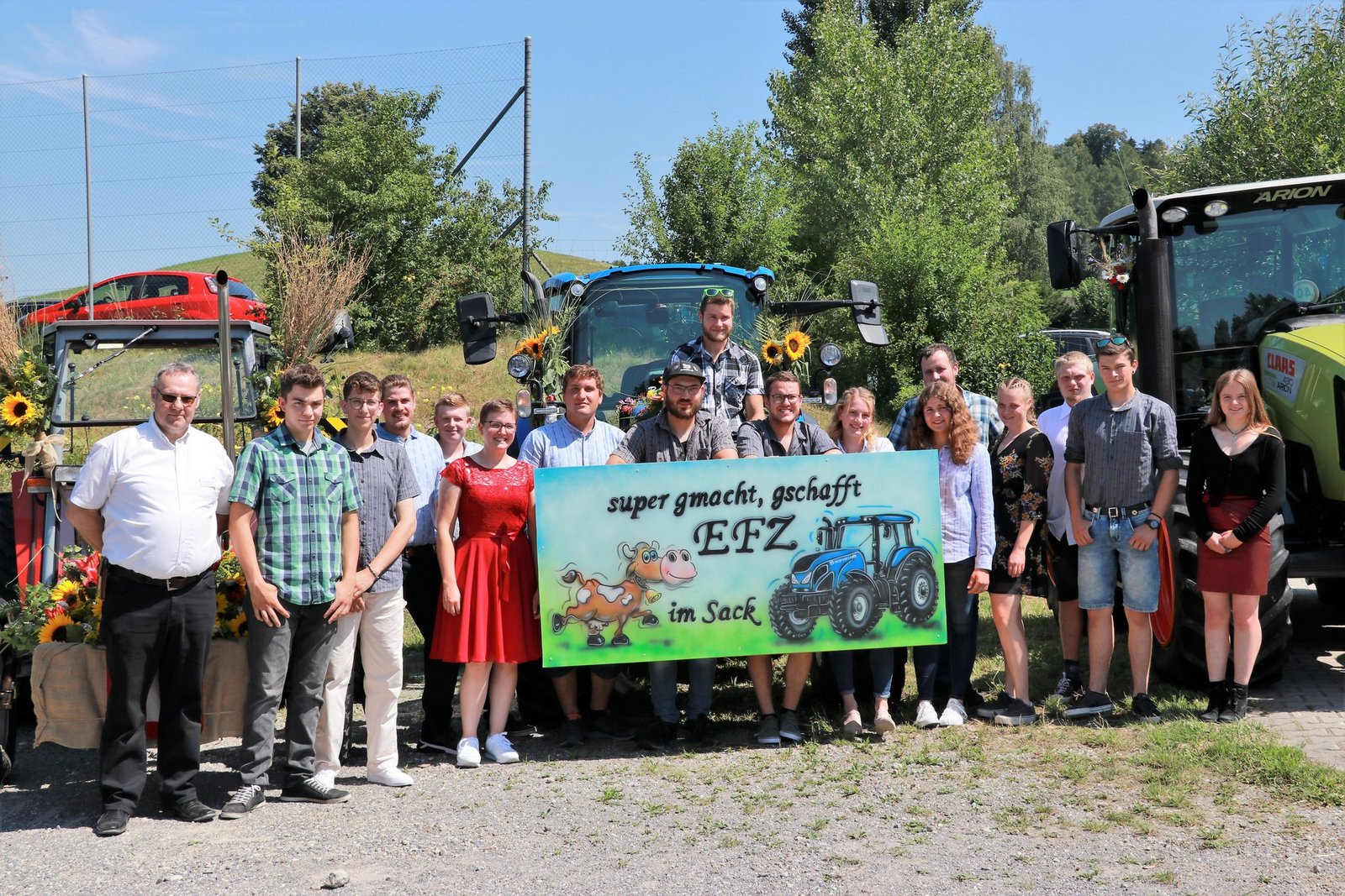 Wie gewohnt waren die jungen Berufsleute mit ihren geschmückten Traktoren aufgefahren, unter dem Applaus ihrer Familien, Berufsbildner Freunden und zahlreichen weiteren Gästen.