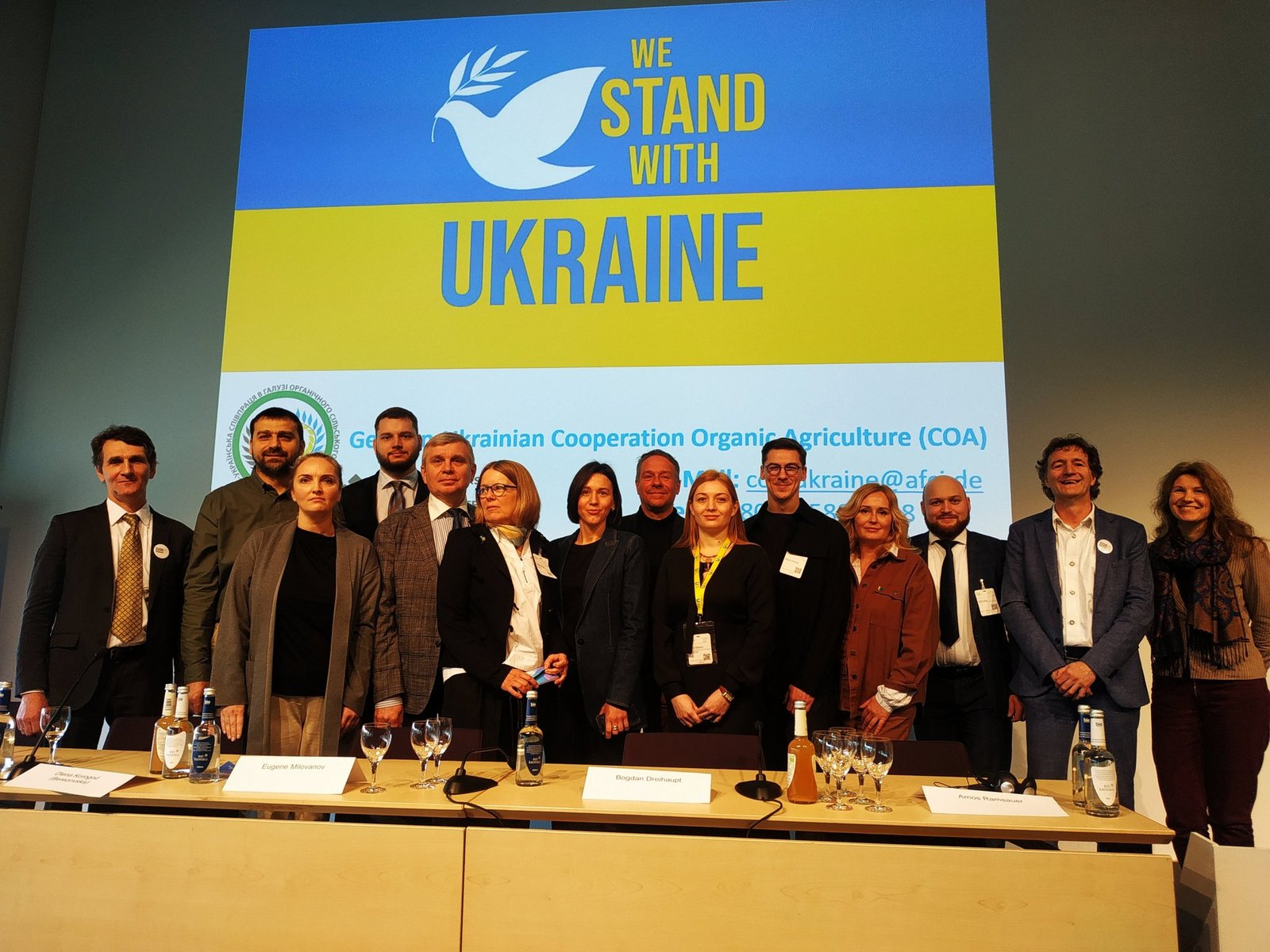 Die Veranstaltung «Ukraine – Ein Jahr nach dem Krieg – Innovationskraft ökologischer Betriebe» wurde von EEPO und COA organisiert. Gemäss dem Motto «Zusammen sind wir stark!» waren alle grossen Organisationen des ökologischen Landbaus auf der Veranstaltung vertreten, darunter Olena Korogod von Organic Ukraine, Eugene Milovanov von der Organic Federation of Ukraine, Evgenya Yushchenko von Biodynamika Ukraina und Irina Kazakova von Permaculture Ukraina.