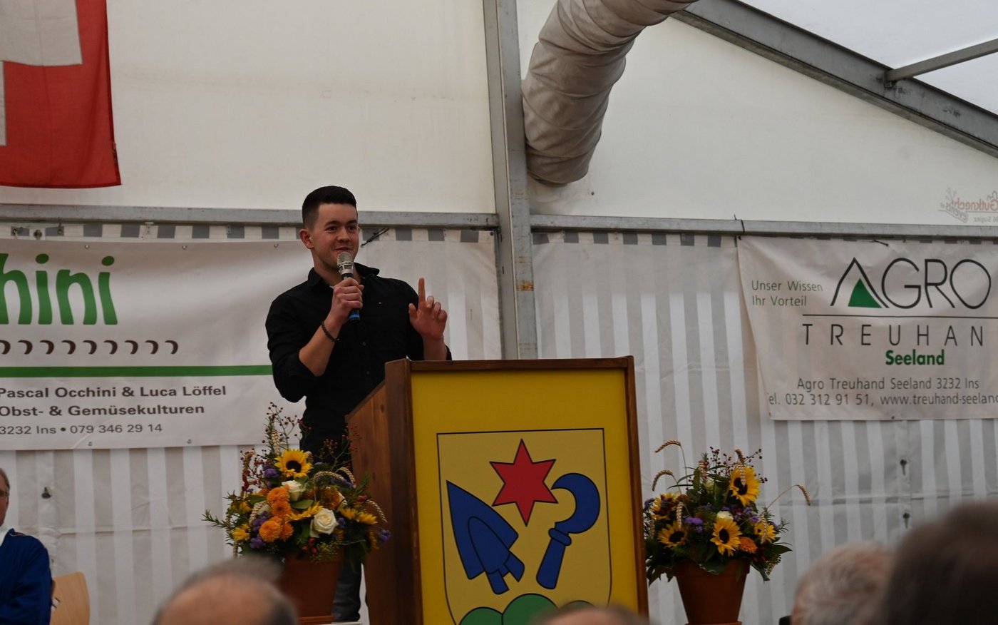 Aber nicht nur zurück und in die Gegenwart wird beim Jubiläum geschaut. Auch ein Blick in die Zukunft wird geworfen. Diesen wagt Kevin Pfister aus Kerzers. Der 24-Jährige hat diesen Sommer die Ausbildung zum Gemüsegärtnermeister bravourös abgeschlossen. Er hat bei jungen Beufskollegen auch deren Meinung erfragt. Klar sei, dass mit der schwierigen Personalsituation, den steigenden Kosten für Betriebsmittel, den steigenden ökologischen Anforderungen, dem Wetter und nicht zuletzt mit dem Preisdruck, riesige Herausforderungen auf die künftigen Betriebsleiter warten. Aber: «Wir nehmen diese Herausforderung an», macht Pfister deutlich. Die Jungen sähen auch Chancen. Denn Gemüse brauche es immer, und sei es auch nur der Salat im Fastfood-Menü, scherzt er. Und dann wird der jungen Mann ernster und macht deutlich: « Ich will erreichen, dass meine künftigen Kinder, sollten sie mir denn vergönnt sein, so viel Freude an diesem Job haben dürfen, wie ich es habe.» [IMG 8]