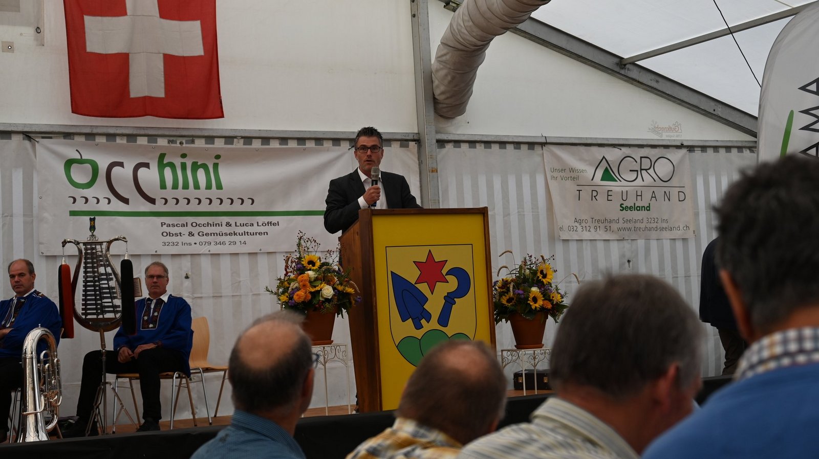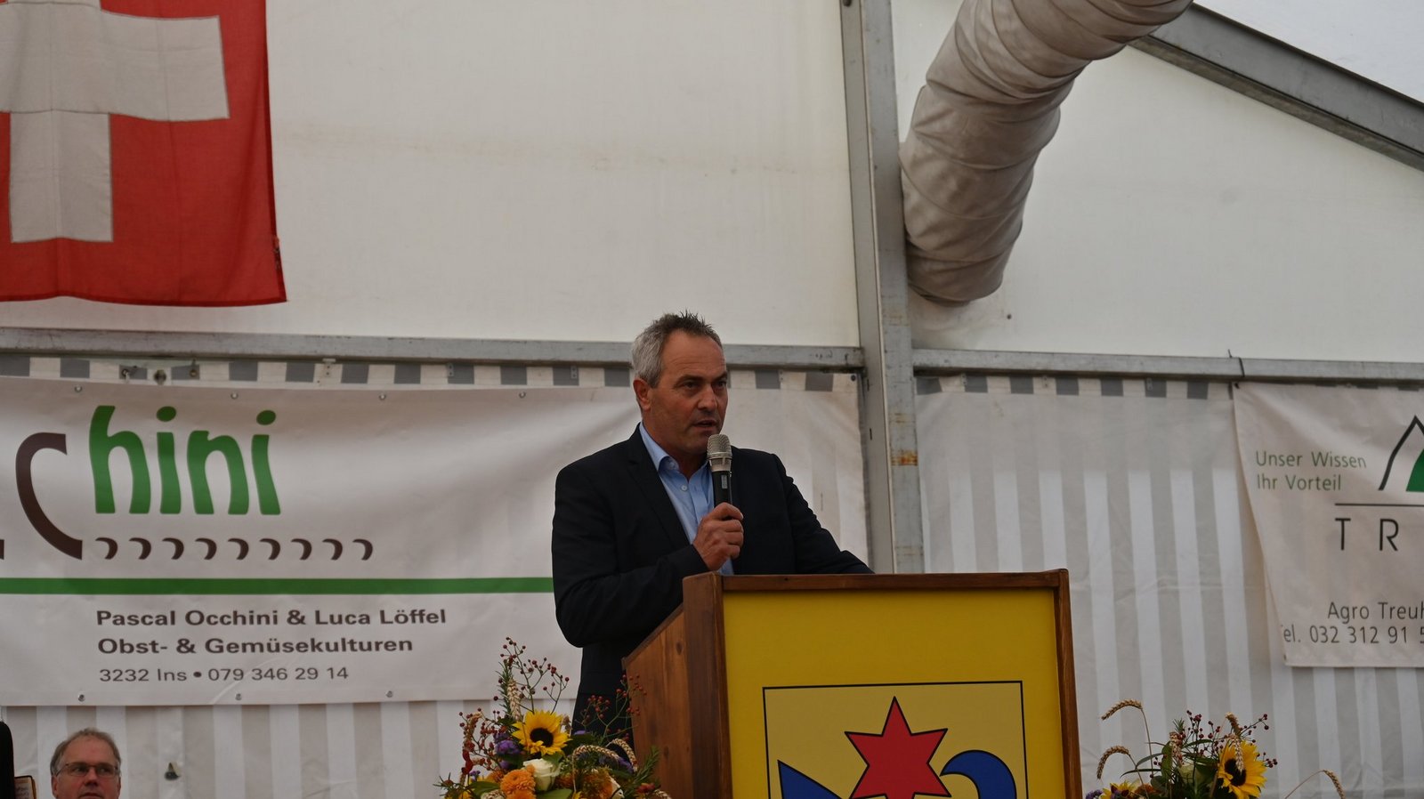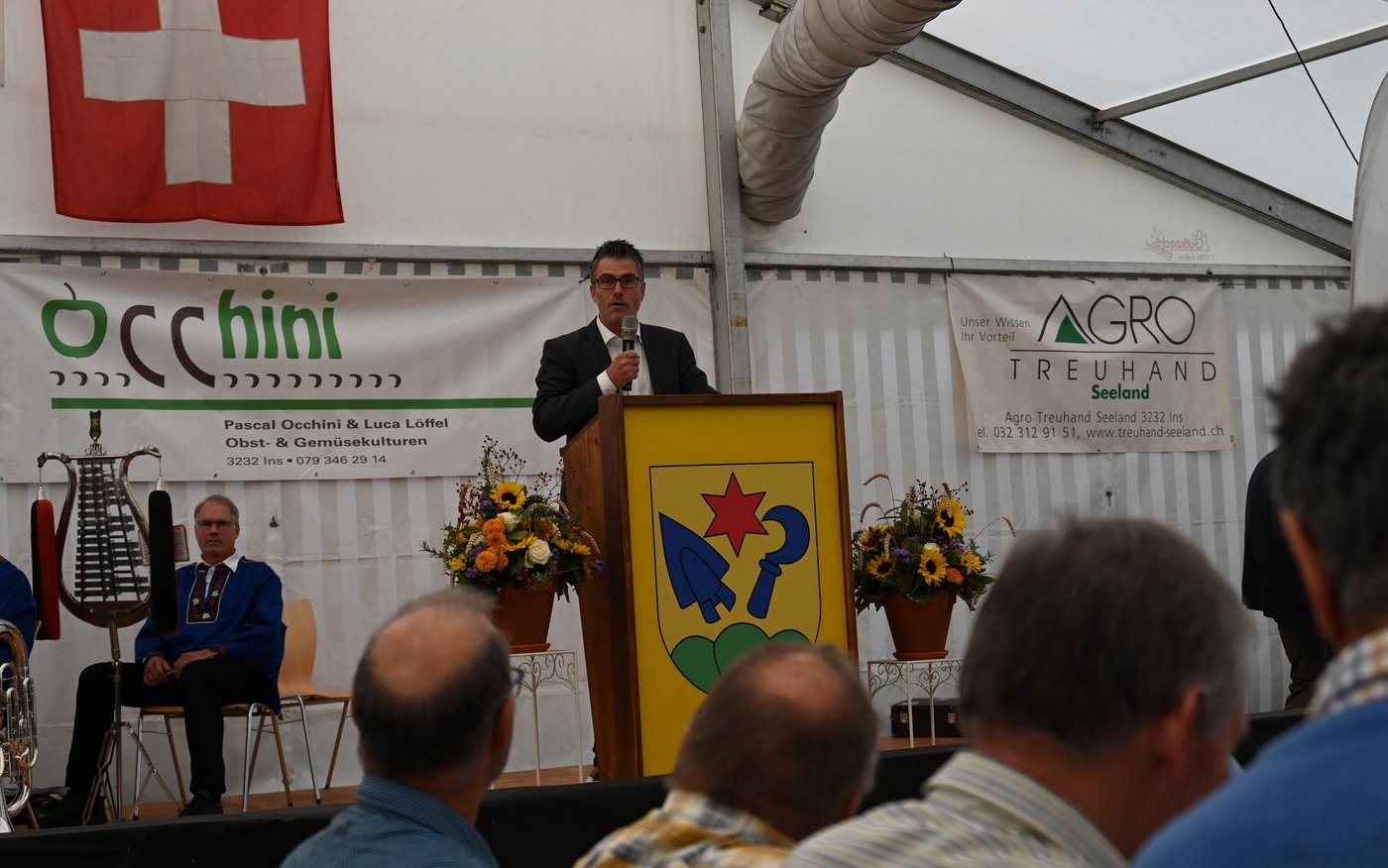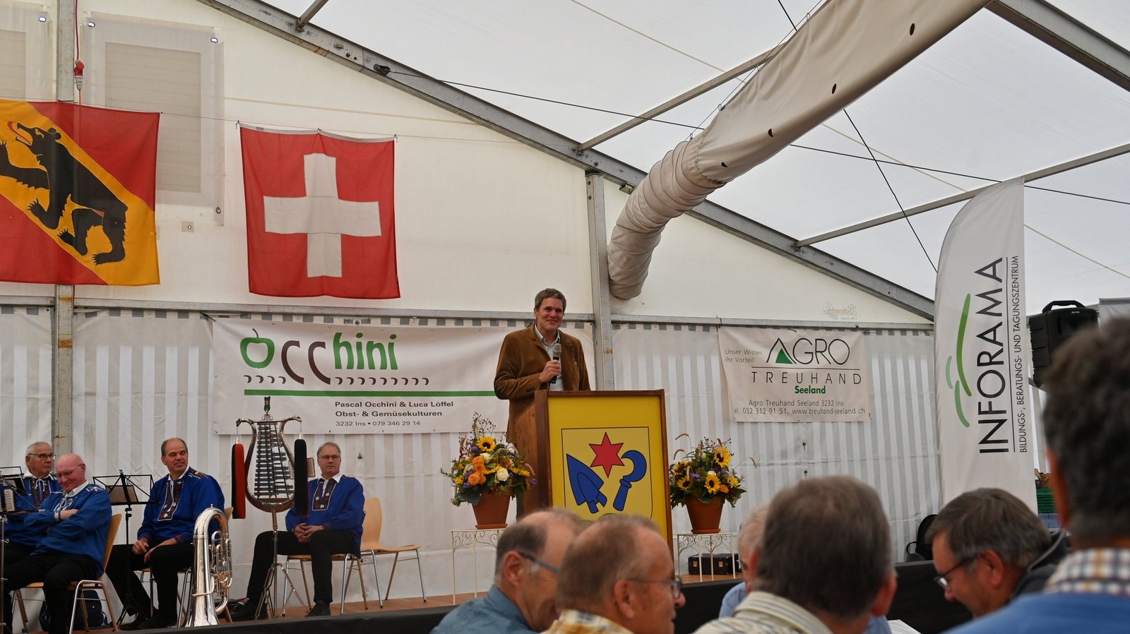 Auch der Amtsvorsteher des Amts für Landwirtschaft und Natur (Lanat), Michael Gysi, ist unter den Gratulanten. Als erstes betont er: « Das Seeland spielt im Kanton Bern eine wichtige Rolle.» Dies auch wegen der vielen Spezialkulturen. Das Seeland gelte als nationaler Hotspot im Bereich Biodiversität. Zugleich werde hochintensive Produktion betrieben. Damit sei das Seeland einzigartig und ein nationaler Leuchtturm. Gysi zeigt sich beeindruckt vom Engagement der Landwirte in der Zusammenarbeit mit der Forschung. «Wir dürfen stolz sein auf die Leistung des Inforama Seeland», betont er. Das oberste Ziel sei immer, den Lernenden das nötige Rüstzeug mit auf den Weg zu geben, macht er deutlich. [IMG 12]