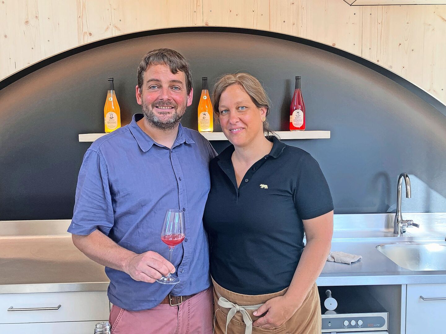 Topaz liefert den würzigen, vielschichtigen Apfelsaft, welcher nach Amalie, einer eleganten Urgrossmutter benannt ist, welche die Hosen anhatte auf dem Betrieb. Diese habe einst, wie es so schön heisst, über den Miststock geheiratet. Rosa schliesslich ist nach Gotte Rösly benannt, die als neugierig galt und zudem pausenlos redete. Den passenden Apfelsaft liefert die Sorte Weirouge, welche über viel Säure und rotes Fruchtfleisch verfügt. «Äpfel sind weniger süss als Trauben, die Sorten haben eine viel grössere Säurevarianz, das macht es interessant», so Christoph Bär.