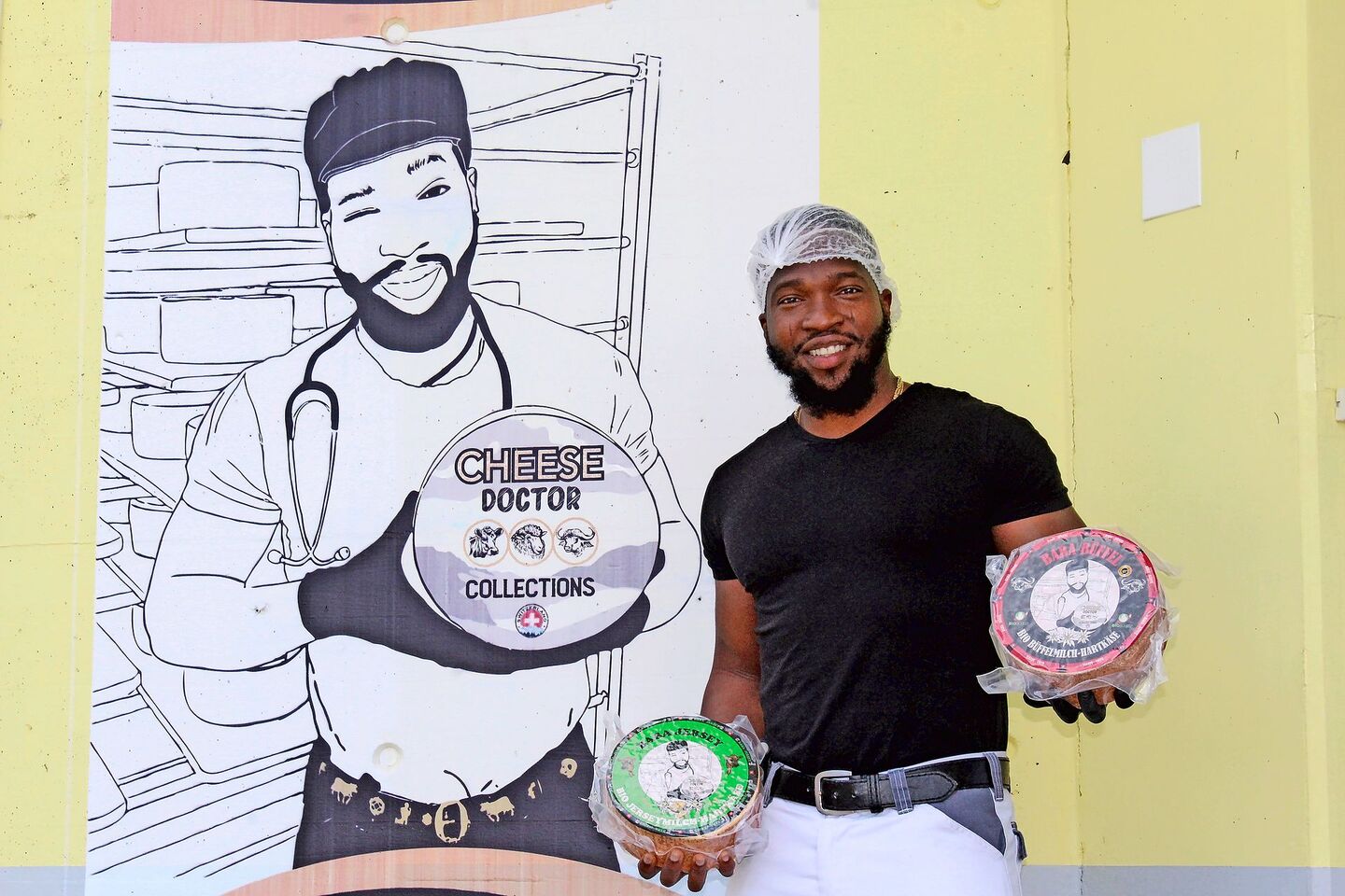 Für den Geschäftsmann war klar, ein «Branding», also eine Markenbildung, muss her: «Mit einem Branding bekommen Produkte einen Wiedererkennungswert. Bevor du einen Käse auf den Markt bringst, musst du wissen, wie du ihn präsentieren willst. Denn Käse gibt es genug, wieso sollen die Leute deinen Käse kaufen?» Die passende Idee für das Branding entstand 2022. Baba Adewale hängte sich während des Käsens ein Stethoskop um den Hals und postete das Bild auf Instagram. Die positiven Reaktionen überraschten ihn. Das Branding «Cheese Doctor» war geboren.
