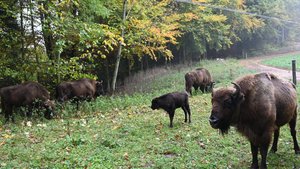 Die umliegenden Landwirte und auch ich waren schon vor Ort. Es bestätigt sich. Die anwesenden Wisente halten sich vorwiegend auf dem Wiesland auf. Die Projektveranwortlichen warnen auch, das Gehege in Zukunft mit einem Mindestabstand von 50 Meter zu den Tieren zu passieren; das Gefahrenpotential für Wanderer und Biker und andere Nutzer des Waldes ist offensichtlich gegeben.