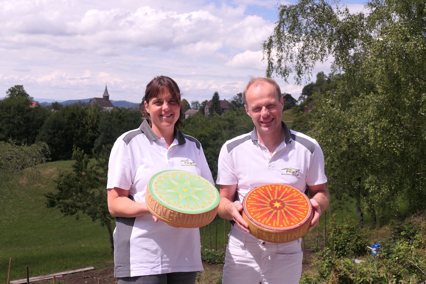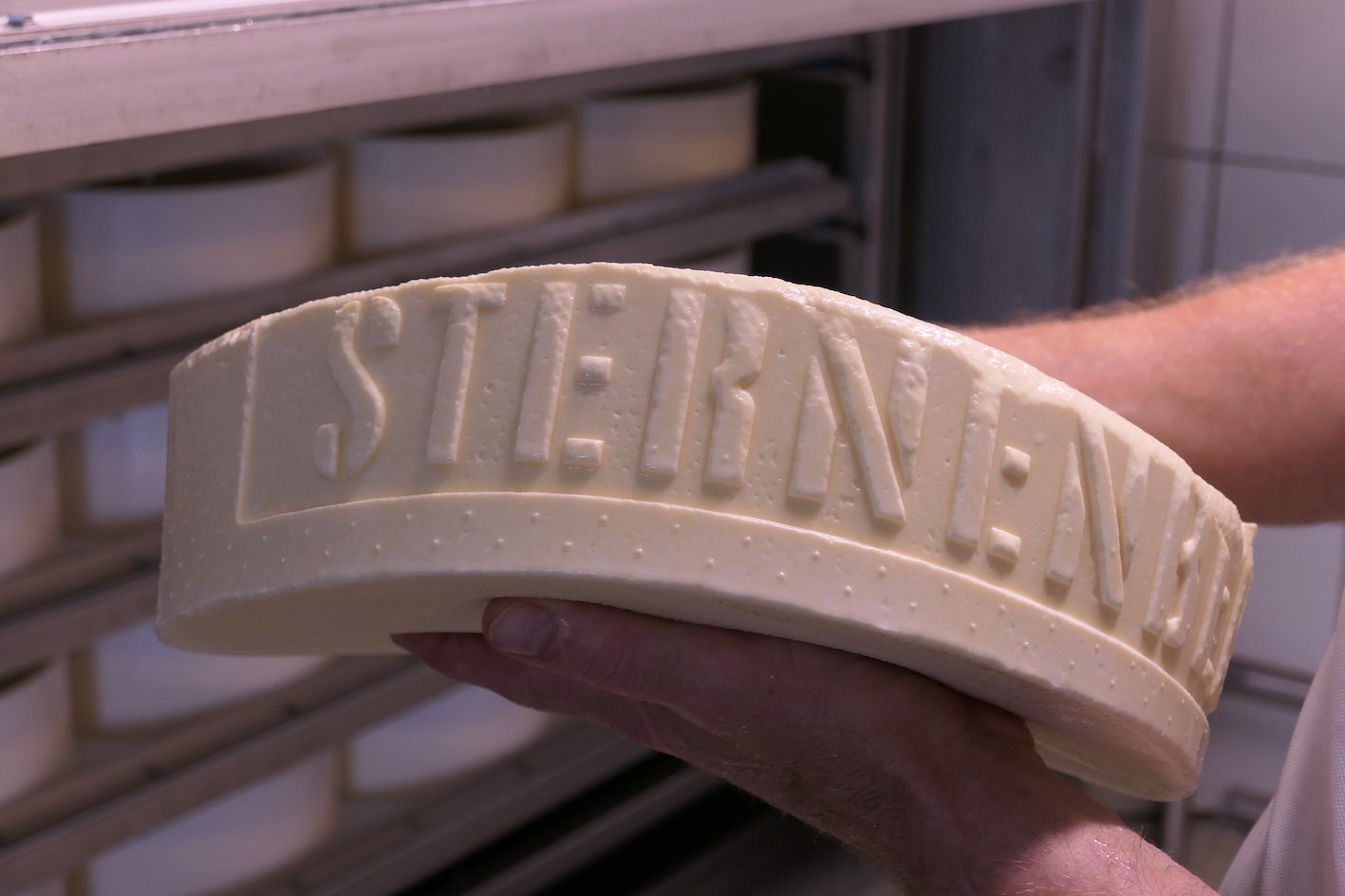 Die Käselaibe im Gestell der Klimazelle sind erst ein paar Stunden alt. Ein Mitarbeiter wendet sie, einen nach dem anderen, damit der Milchzucker gleichmässig zu Milchsäure umgewandelt wird. Den sechs Kilogramm schweren Laiben ist auf der Seite der Name eingeprägt: Sternenberg. Die Käsesorte steht für die Ortschaft Sternenberg im Zürcher Oberland auf 870 m ü. M. Hier führen Urs und Bernadette Preisig seit 18 Jahren in zweiter Generation eine Käserei.