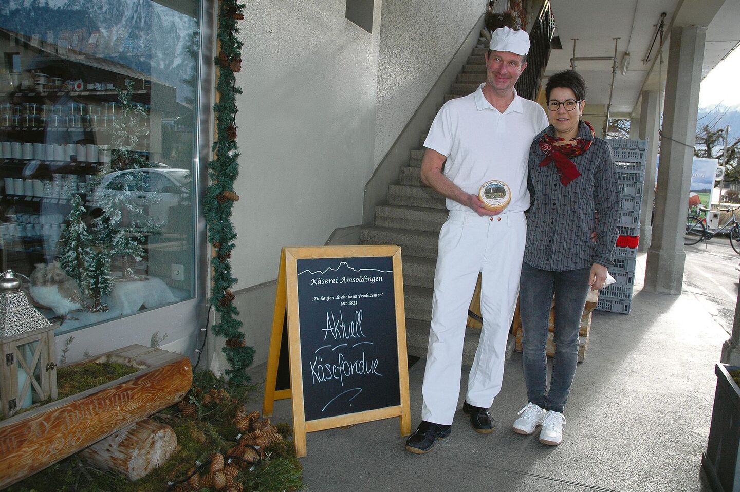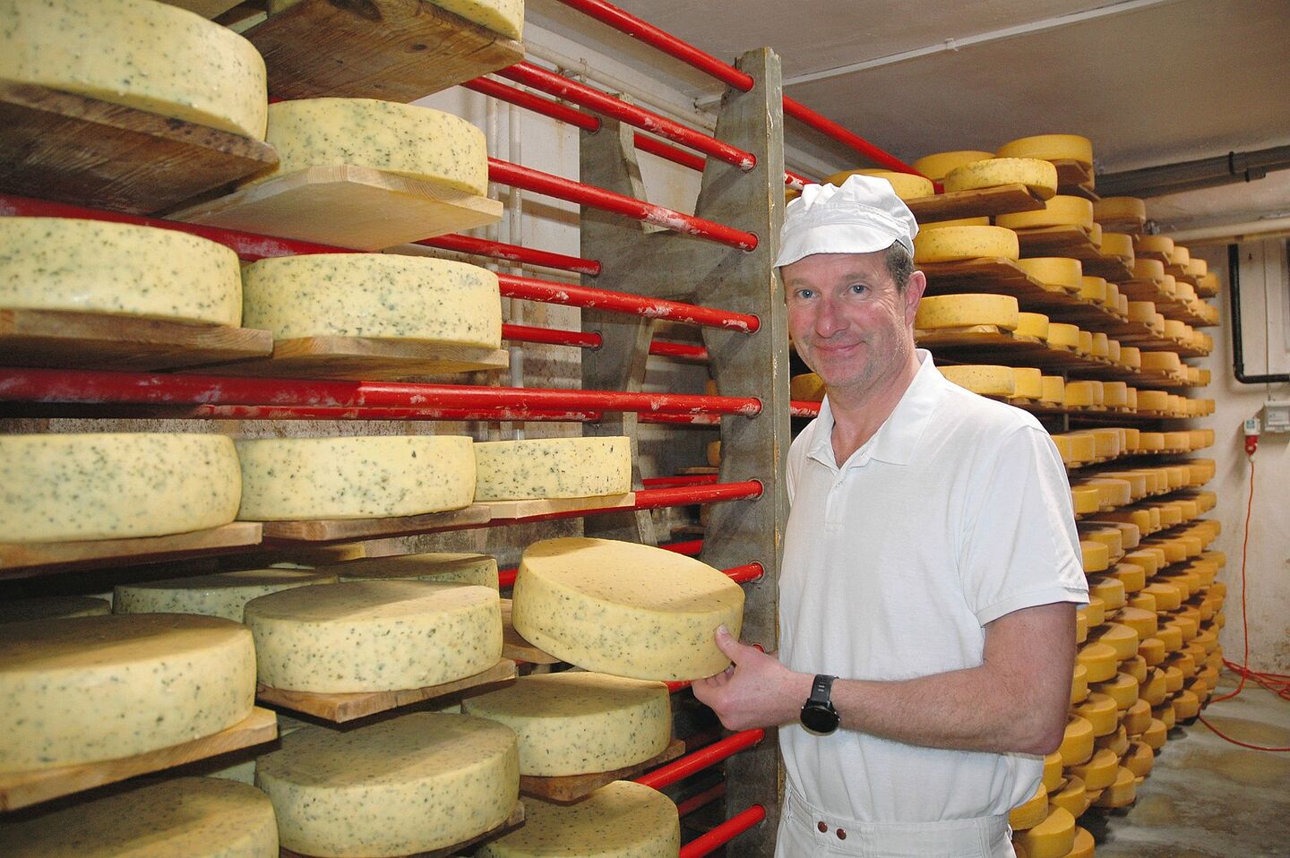 «Wir sind stolz auf unsere Eigenprodukte», sagt Beat Kipfer, der nun schon seit einem Vierteljahrhundert den Käsereibetrieb leitet. Vielfältig sind denn auch die Angebote. «Besonders beliebt ist unser Amsoldinger Joghurt, das wir in dreissig verschiedenen Sorten herstellen», sagt Kipfer weiter. Blickt man auf das Käsesortiment, so gibt es das «Stockhornmutschli» oder den «Amsoldinger Halbhartkäse» als Spezialitäten. Vom Mutschli werden wöchentlich etwa 1000 Stück hergestellt, die Käsevielfalt besteht aus 15 verschiedenen Sorten.