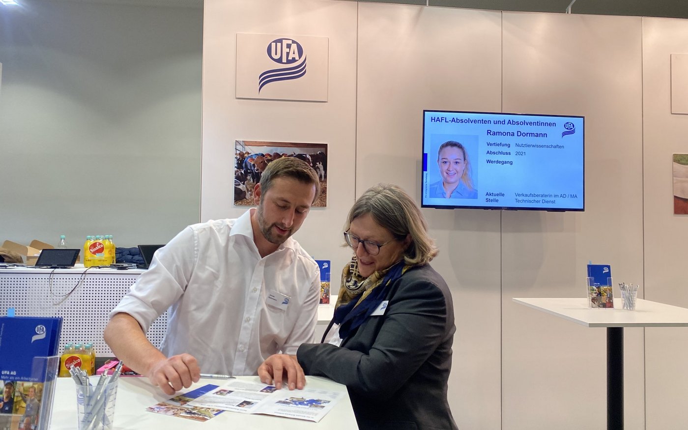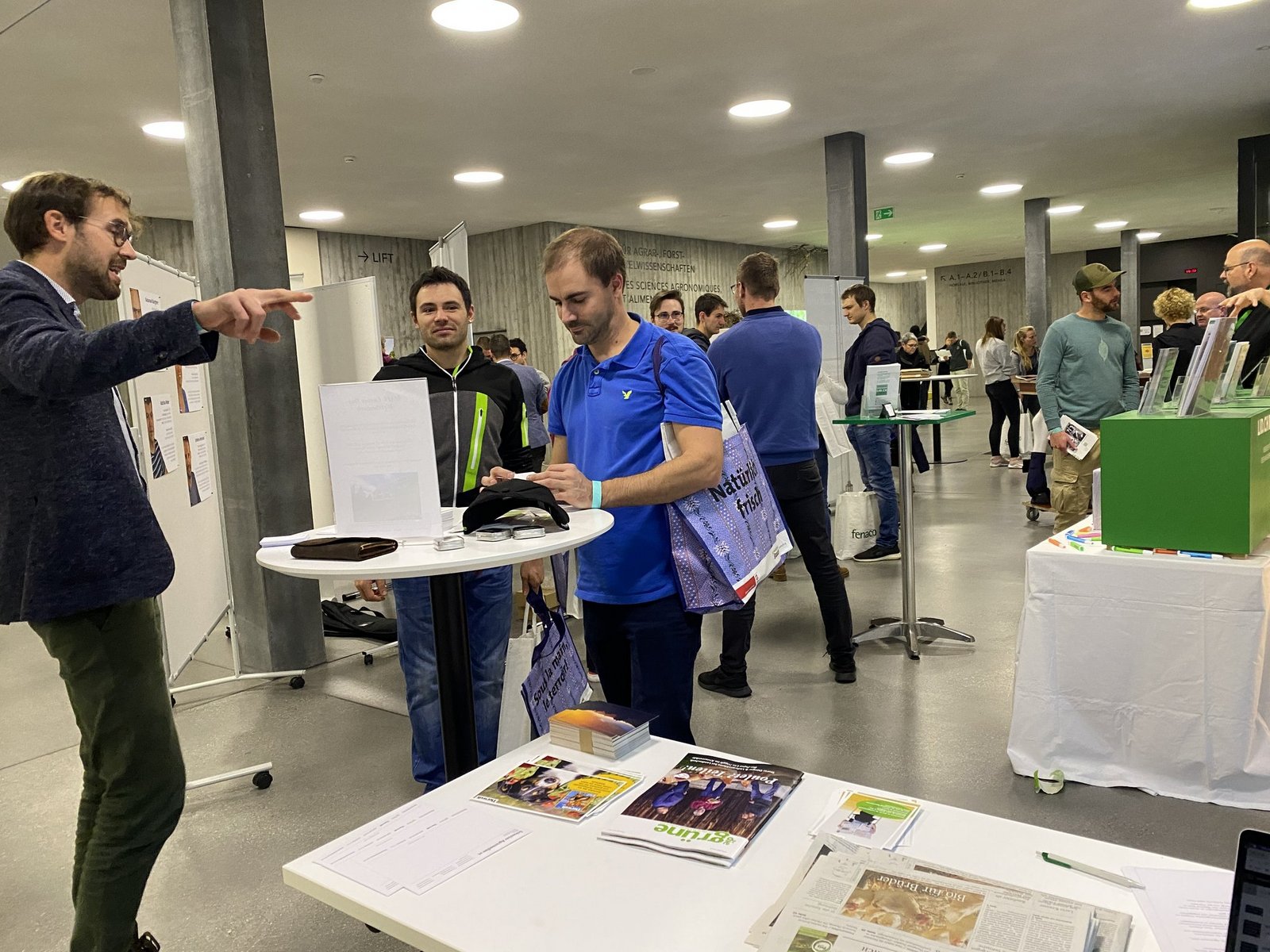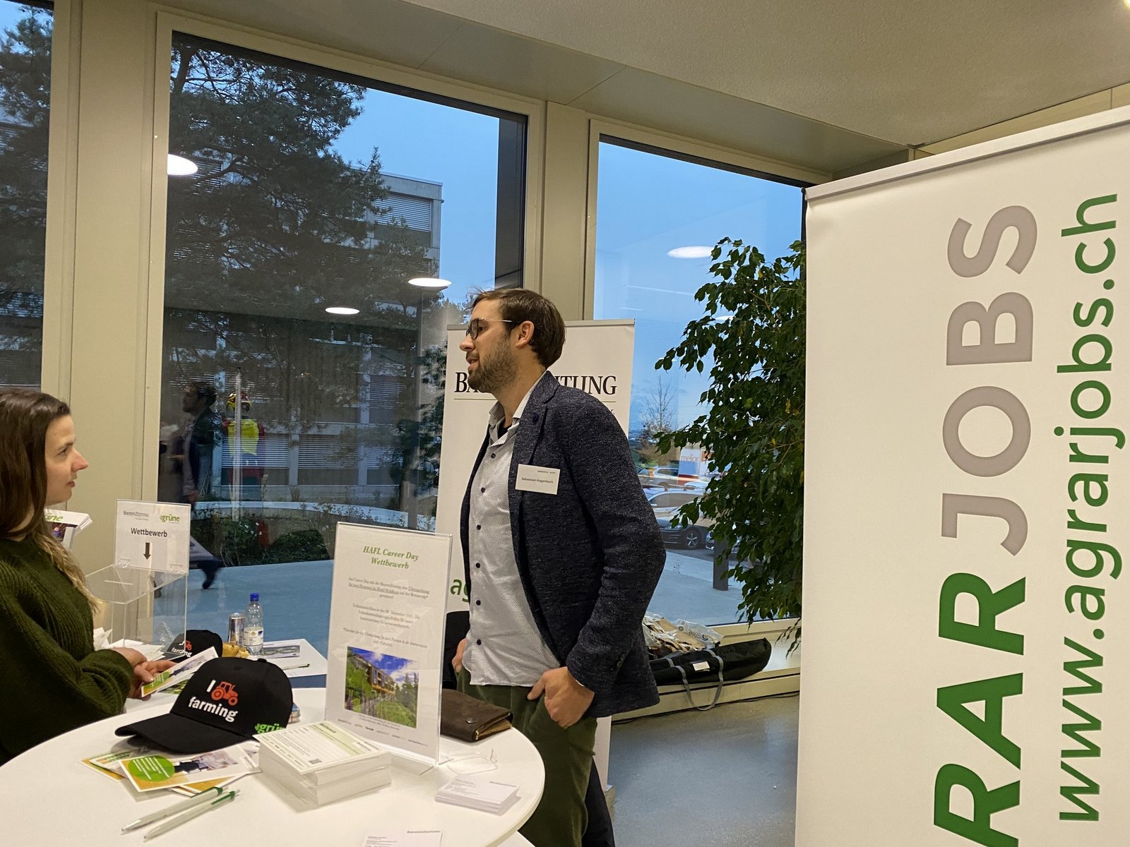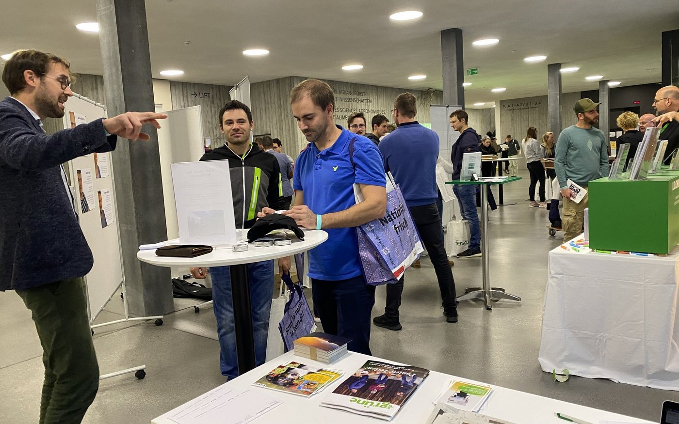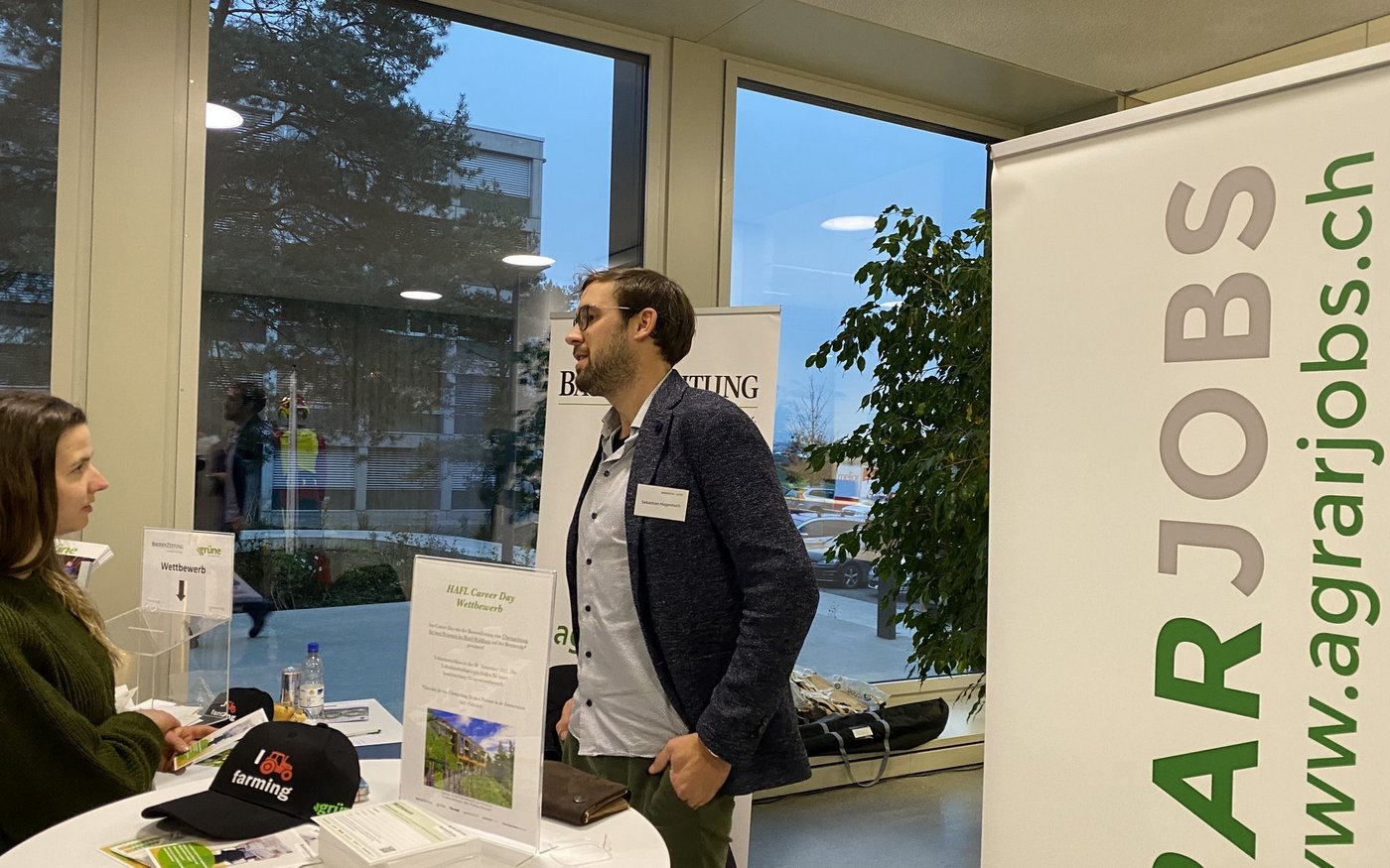 [IMG 2]Heute sind wirklich alle vor Ort. Das ist ein grosser Vorteil und ein Privileg für uns Studierende. So muss man nicht stundenlang Online-Jobportale durchforsten, sondern kann mit den Anwesenden sprechen und direkte Fragen stellen. Eine klare Vorstellung davon, wo ich nach Abschluss des Agronomiestudiums an der Fachhochschule lande, habe ich nicht. Da ich als Vertiefung Nutztierwissenschaften gewählt habe, würde ich wahrscheinlich auch in diesem Bereich arbeiten wollen. Mal sehen.