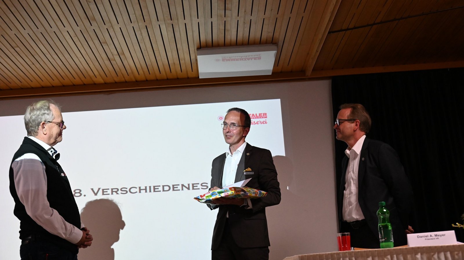 Die Freude wich Wehmut, als es darum ging, Stefan Gasser, der als langjähriges Verwaltungsratsmitglied zurücktrat, zu verabschieden. Emotional verdankten Daniel Meyer und Frank Jantschik die grosse Arbeit von Gasser. «Mit ihm tritt eine Urgewalt ab. Er hat gekämpft, gelitten und uns sehr stark unterstützt», betonte Daniel Meyer. Und nicht minder emotional verabschiedete sich der Zurückgetretene. Als Nachfolger von Stefan Gasser wurde Michael Mathier, Geschäftsführer der Milka Käse AG, einer Käsehandelsfirma aus Burgdorf, gewählt. Der 44-Jährige, der an der GV nicht anwesend sein konnte, sei fachlich bestens gerüstet, um den Verwaltungsrat der ESK, die übrigens die schönste Schaukäserei der Schweiz sei, zu unterschützten, betonte Präsident Daniel Meyer. [IMG 2]