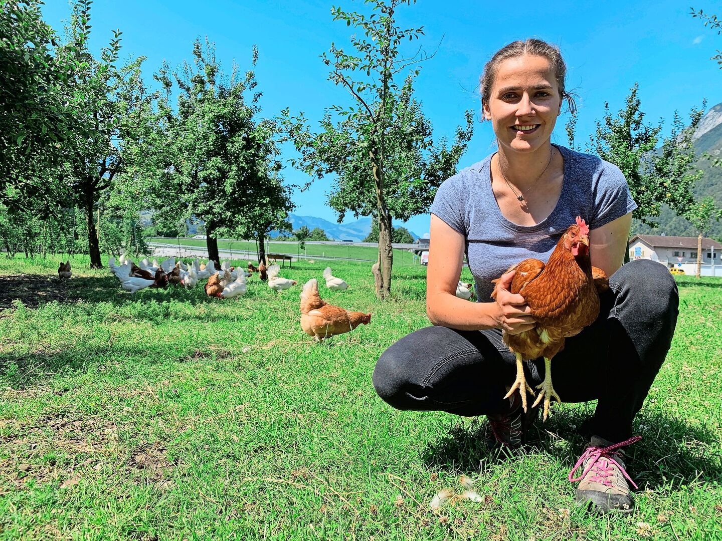 Die 23-jährige Erika von Euw wuchs auf dem elterlichen Betrieb Sand in Ingenbohl auf. Der wird heute noch von ihren Eltern Armin und Ursi geführt und umfasst 15 ha LN, wobei nur 5 ha Eigenland. Im Stall stehen 25 Milchkühe, «aller Farben, aber vermehrt Swiss Fleckvieh», sagt von Euw. In einem 300 m2 Mastpouletstall werden je nach Mastdauer 4000 bis 6000 Poulet für Micarna gemästet. 700 Legehennen liefern Freilandeier für die Direktvermarktung. Auch vom Obstbau (kleine Niederstammanlage und 90 Hochstämmer) werden Kirschen, Zwetschgen und Äpfel selbst vermarktet.