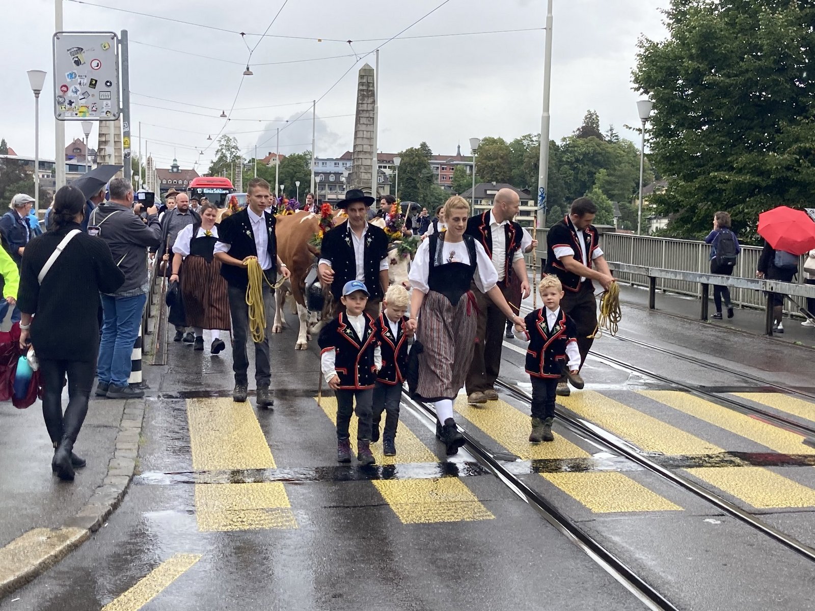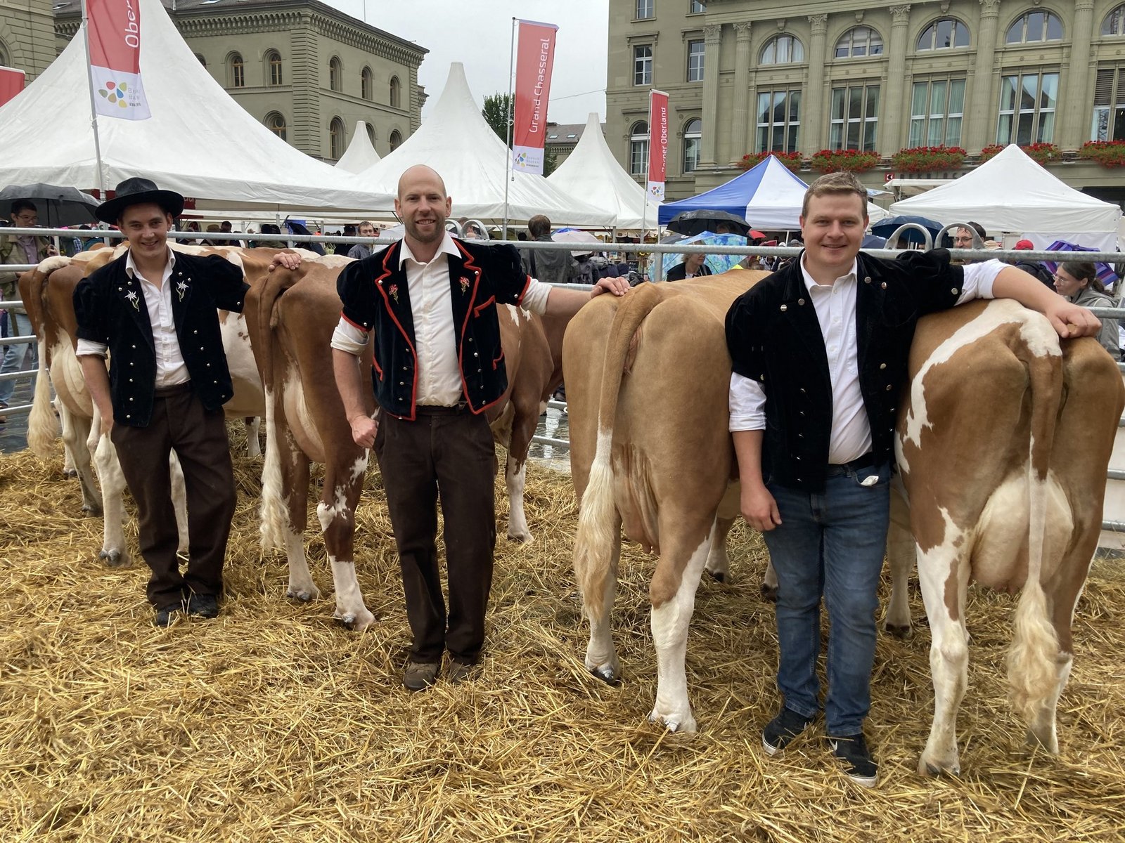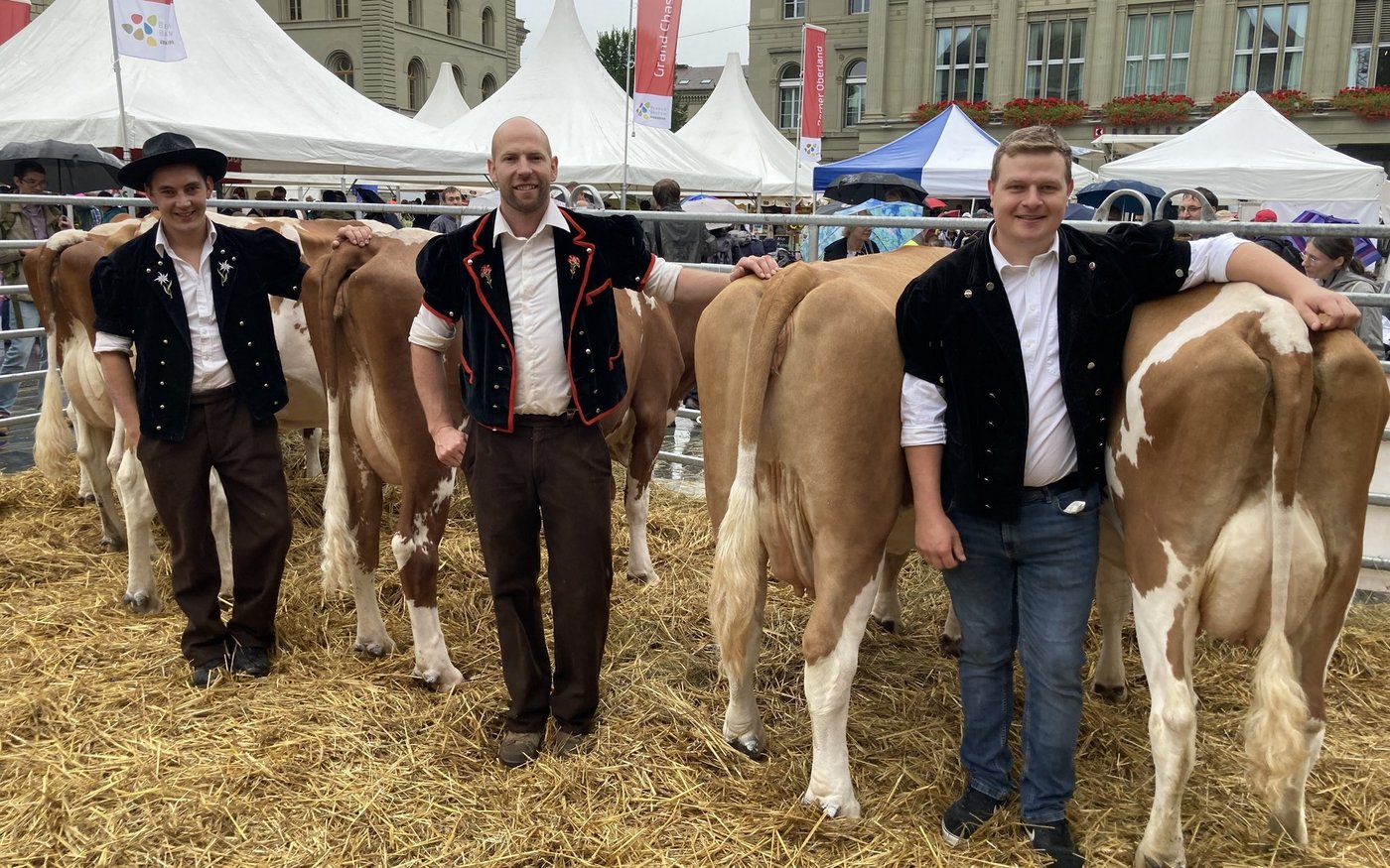[IMG 1-2]Auch der traditionelle Alpaufzug der Familie Markus und Annina Schweizer aus Utzigen sorgte einmal mehr für viel Freude auf dem Bundesplatz. Dabei mussten die wunderschön geschmückten Kühe für manches Fotosujet erhalten. Für die Familie Schweizer ist es das fünfte Mal, dass sie mit ihren Kühen über die Kornhausbrücke zum Bundeshaus marschieren. «Es ist jeweils ein grosser Aufwand für uns, aber ein Aufwand, den wir gerne in Kauf nehmen», sagt Markus Schweizer.