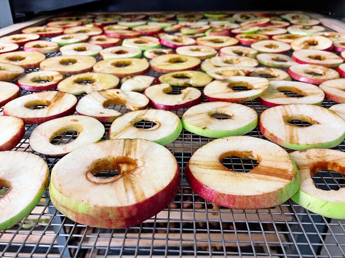 Die regulären Öffnungszeiten der Dörranlage im Rafzer Werkgebäude sind jeweils dienstags, freitags und samstags von 8 bis 9 Uhr. Doch auch bei geschlossener Türe hat Hauri viel zu tun: Bis Obst, Gemüse und Nüsse genügend getrocknet sind, dauert es je nach Art bis mehr als 10 Stunden. Während dieser Zeit tauscht Hauri die Gitter regelmässig untereinander aus, damit das Dörrgut gleichmässig trocknet. Über Nacht lässt er die Öfen nicht laufen. «Spätestens um 22 Uhr ist Schluss», sagt der Dörrmeister.