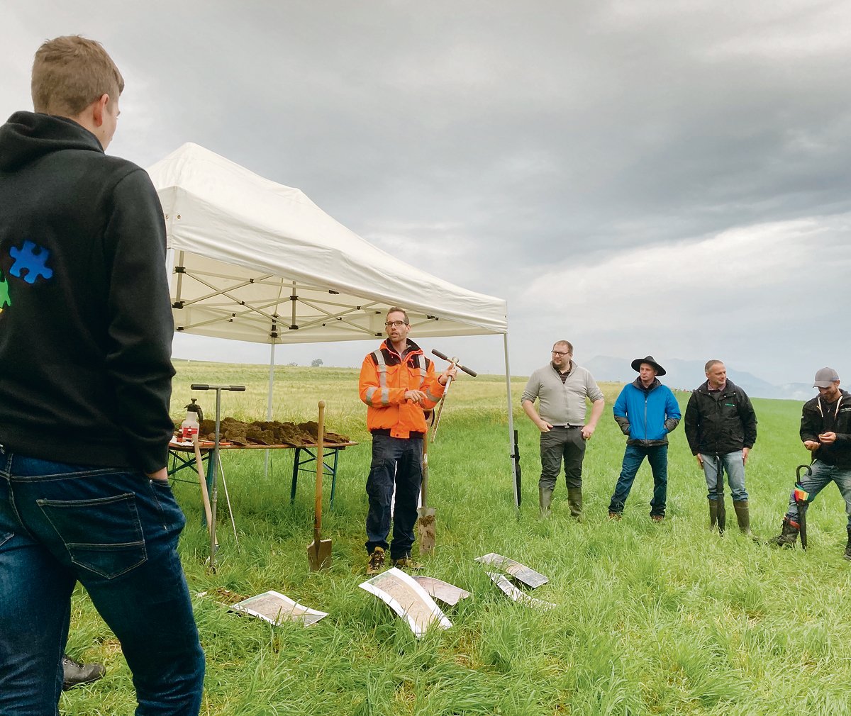 Ein spezielles Thema war die Bodenbeurteilung. Felix Etterlin gewann dazu trotz unfreundlichen Wetterverhältnissen die Aufmerksamkeit der Teilnehmer.