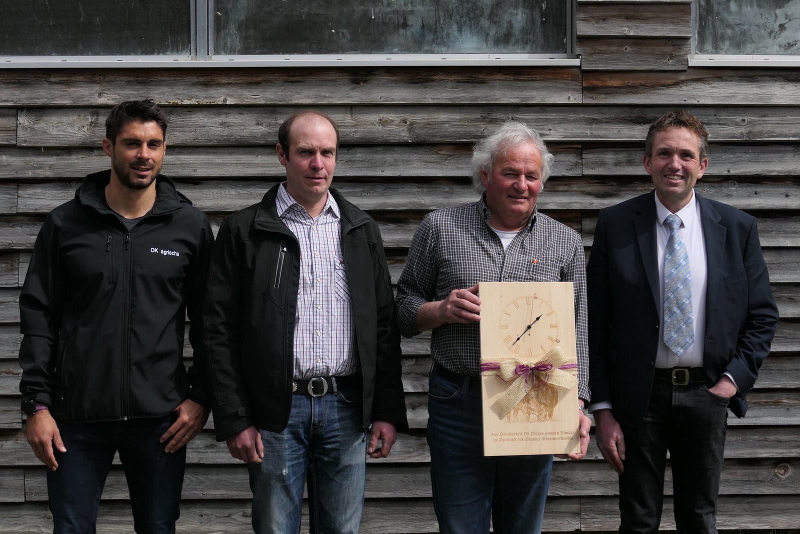 Peter Marugg aus Jenaz hatte nach acht Jahren im Vorstand des Bündner Bauernverbands seinen Rücktritt bekannt gegeben. «Mit ihm geht ein ganz Grosser», würdigte ihn Präsident Thomas Roffler. Marugg habe sich insgesamt über Jahrzehnte im Verband engagiert. Zudem habe er sich als Pionier der Mutterkuhhaltung stark für diese eingesetzt.