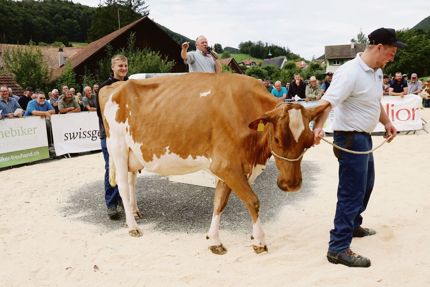 Es herrschte eine gute Stimmung im Ring, um den Ring und beim Mittagessen in der Festwirtschaft. Dazu beigetragen hat bestimmt das angenehme Wetter mit der idealen Temperatur. Wie seit Jahren animierte Gantrufer Andreas Aebi mit amüsanten Aussagen zum Kaufen: «Hier haben wir eine richtig flotte Kuh mit allen Vorzügen. Sie heisst Italia.» Oder: «Es ist spannend, junge Rinder zu kaufen, aber noch spannender, eine ältere Kuh zu kaufen.» Ronny Schweizer, Tierzucht und Viehabsatz Landwirtschaftliches Zentrum Ebenrain, und Fabian Dettwiler, Tierzuchtlehrer am Ebenrain, stellten die Tiere vor. Die Wirtschaft führte Balz Schweizer, Eptingen, zusammen mit einem aufgestellten und treuen Team. Er freute sich Anfang Nachmittag: «Die Beiz läuft supergut, wie seit Jahrzehnten.»