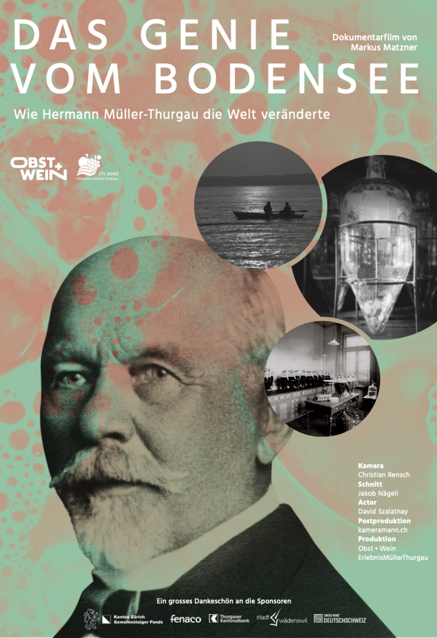 Zum 175-Jahre-Jubiläum hat die Schweizer Zeitschrift für Obst- und Weinbau einen Film produziert: «Das Genie vom Bodensee – wie Hermann Müller-Thurgau die Welt veränderte» von Regisseur Markus Matzner. Die 50-minütige Dokumentation zeigt in mit Laien-Schauspielern besetzten Szenen die wichtigsten Stationen des Professors. Die Hauptrolle als Hermann Müller-Thurgau spielt David Szalatnay, Bereichsleiter Spezialkulturen am Strickhof. Als Zuschauer(in) erhält man zudem einen Eindruck der wissenschaftlichen Arbeitsweisen Anfang des 20. Jahrhunderts und schafft Bezug zur Gegenwart und Zukunft. Der Film soll dazu beitragen, dass Hermann Müller-Thurgau im kollektiven Gedächtnis erhalten bleibt. [IMG 3]