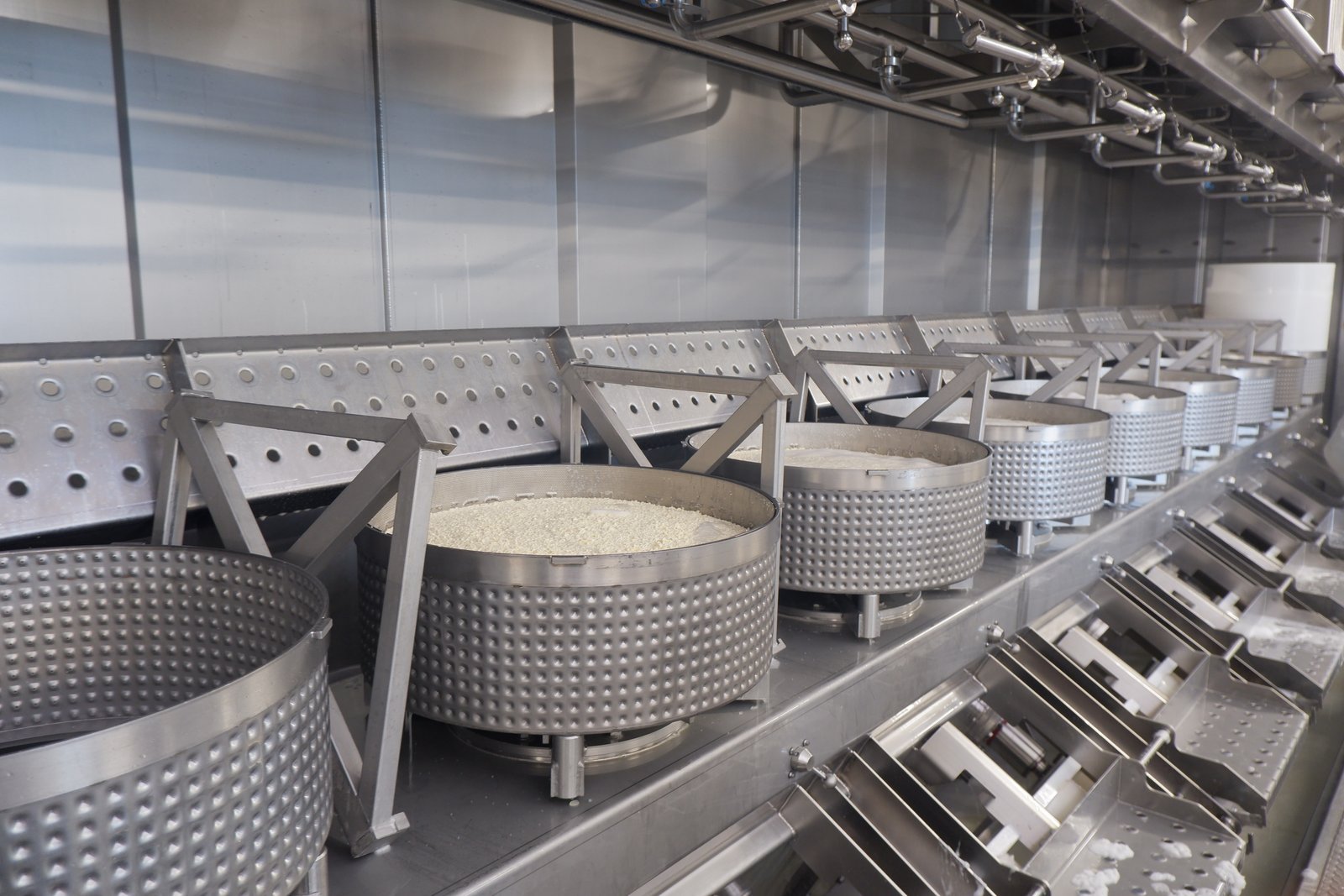 Einzigartig ist auch die Infrastruktur in der neuen Käserei: So steht in Plaffeien seit diesem Jahr die längste Käsepresse der Welt. Auf 17 Metern Länge können 48 Laibe Gruyère gleichzeitig gepresst werden.