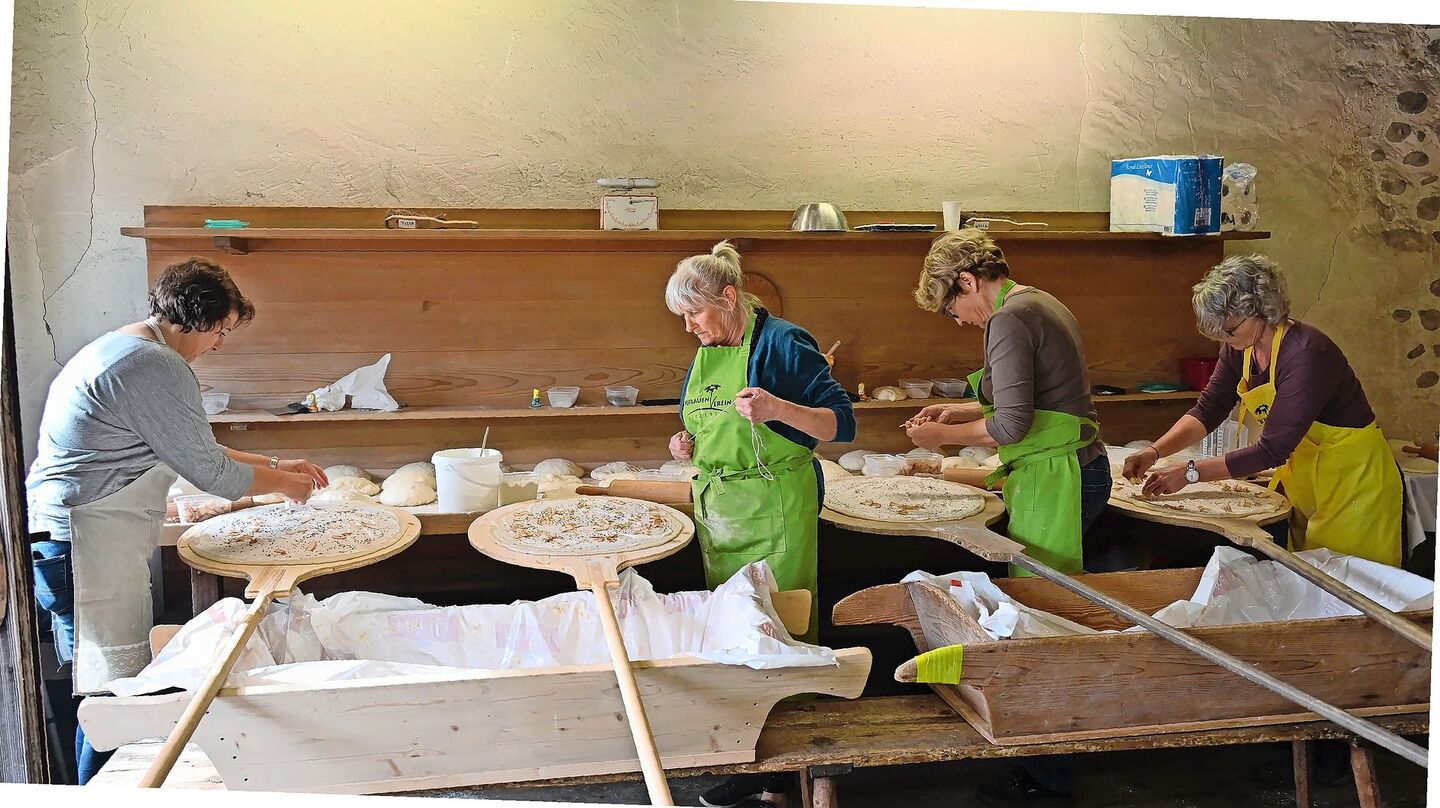 Im Ofenhaus gebackener Salzkuchen hat in Kerzers eine lange Tradition. Der Kuchen war früher an den Backtagen ein praktisches Mittagessen sowie ein guter Temperaturanzeiger. Denn zuerst wurde der Kuchen gebacken. «Je nach Backzeit wusste man, ob der Ofen die richtige Temperatur hatte, um dann das Brot einzuschiessen», heisst es auf der Website von «Kulinarisches Erbe der Schweiz». Die Landfrauen Kerzers halten diese Tradition aufrecht und bieten einmal pro Jahr Salzkuchen an. Das nächste Mal ist es am 20. März so weit. Von 9 bis 13 Uhr wird nebst dem Salzkuchen auch Brot angeboten. Auch für den Salzkuchen bietet Brotteig die Grundlage. Auf einem runden Brett mit langem hölzernen Stiel, der Salzkuchenschüssel, wird der Teig dünn ausgewallt. Er wird mit Rahm bestrichen und mit Speck, Kümmel und Salz bestreut und sofort für wenige Minuten gebacken. Frisch aus dem Ofen schmeckt er am besten.