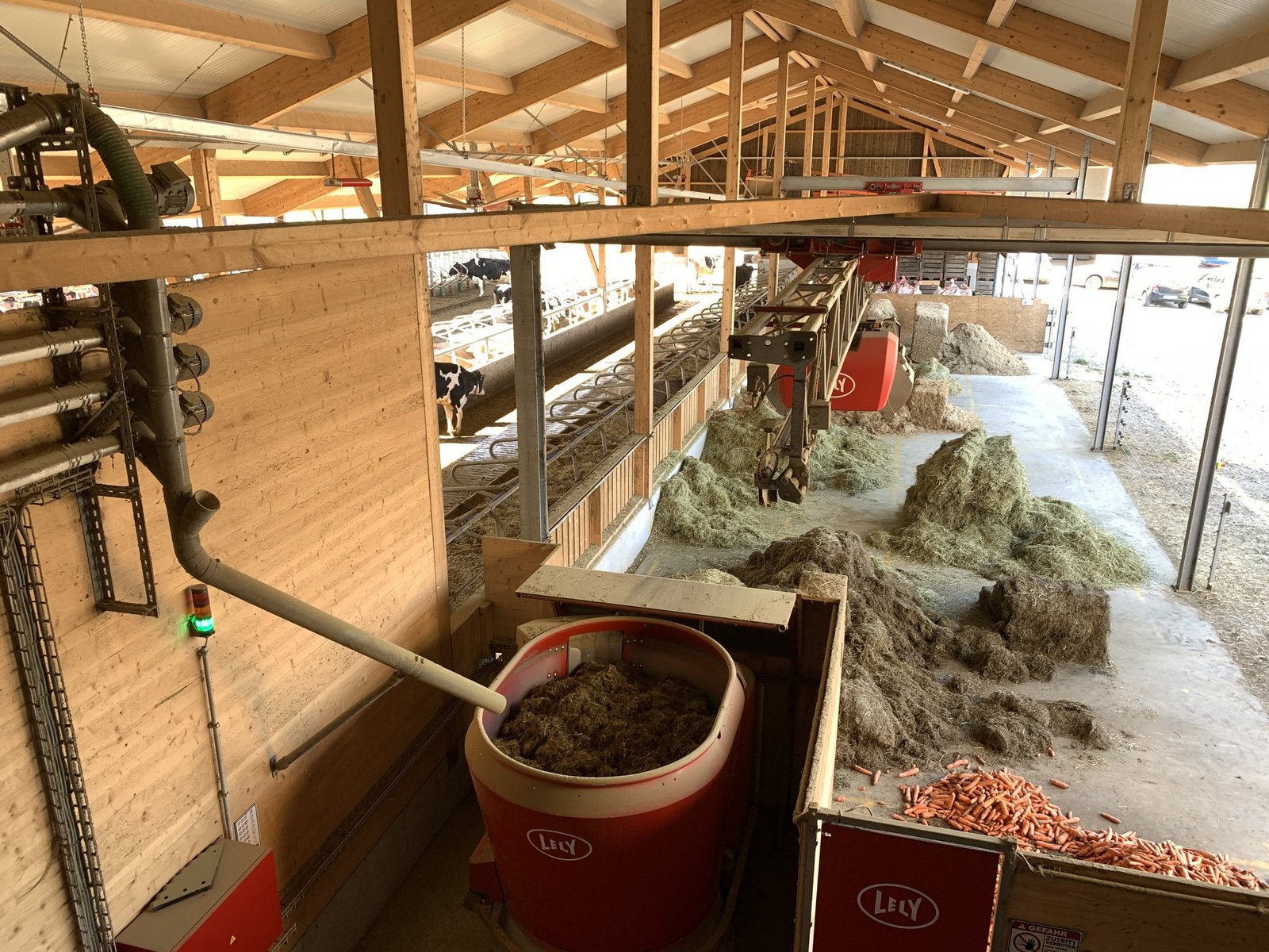 Wichtig seien auch individuelle Rationen, denn jede Gruppe, sei es Jungvieh, Mastrinder, Galtkühe oder Milchkühe, hätten unterschiedliche Bedürfnisse. Das sei mit automatisierten Fütterungssystemen möglich, wo in der Futterküche vollautomatisiert die Rationen aus verschiedenen Komponenten für den Mischwagen zusammengestellt würden. Der Vector passe perfekt zum Raufutterland Schweiz, weil so die Leistung aus Grundfutter erhöht werden könne, dank gezielter Ration und Mehrfachfütterung. «So gibts mehr Milch mit weniger Kraftfutter.»