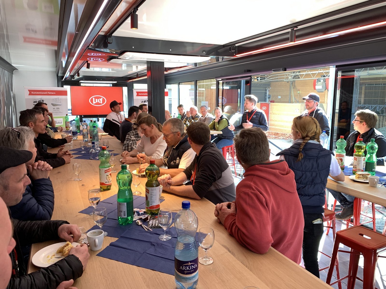 Rund 50 Teilnehmer liessen sich auf dem Betrieb Dürrenmatt über cleveres Füttern informieren, organisiert von Lely Schweiz. Der Marktleader für automatisierte Fütterungssystem lud nach 2020 in den letzten zwei Wochen an fünf Standorten in der Schweiz zu «smart-feeding on tour». Daneben tourt der grosse Truck durch Holland, Deutschland und im April durch Österreich. Das Interesse der Schweizer Bauern sei sehr gross, alle Anlässe seien mit je bis zu 50 Personen ausgebucht, erklärte Marcel Schwager, Verkaufsleiter Lely Schweiz. Mit dem Fütterungsroboter Vector sei Lely bereits seit 2013 in der Schweiz unterwegs. Inzwischen seien schweizweit 60 solcher Systeme installiert, die eignen sich für Neubauten und Umbauten. Und die Nachfrage nehme zu.