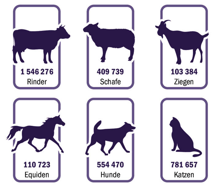 - Tierstatistik: Das Open-Data-Portal «Tierstatistik» bietet frei zugängliche Datensammlungen zu Rindern, Schafen, Ziegen, Equiden, Hunden und Katzen. Diese Daten unterstützen Forschung, Politik und Öffentlichkeit.
