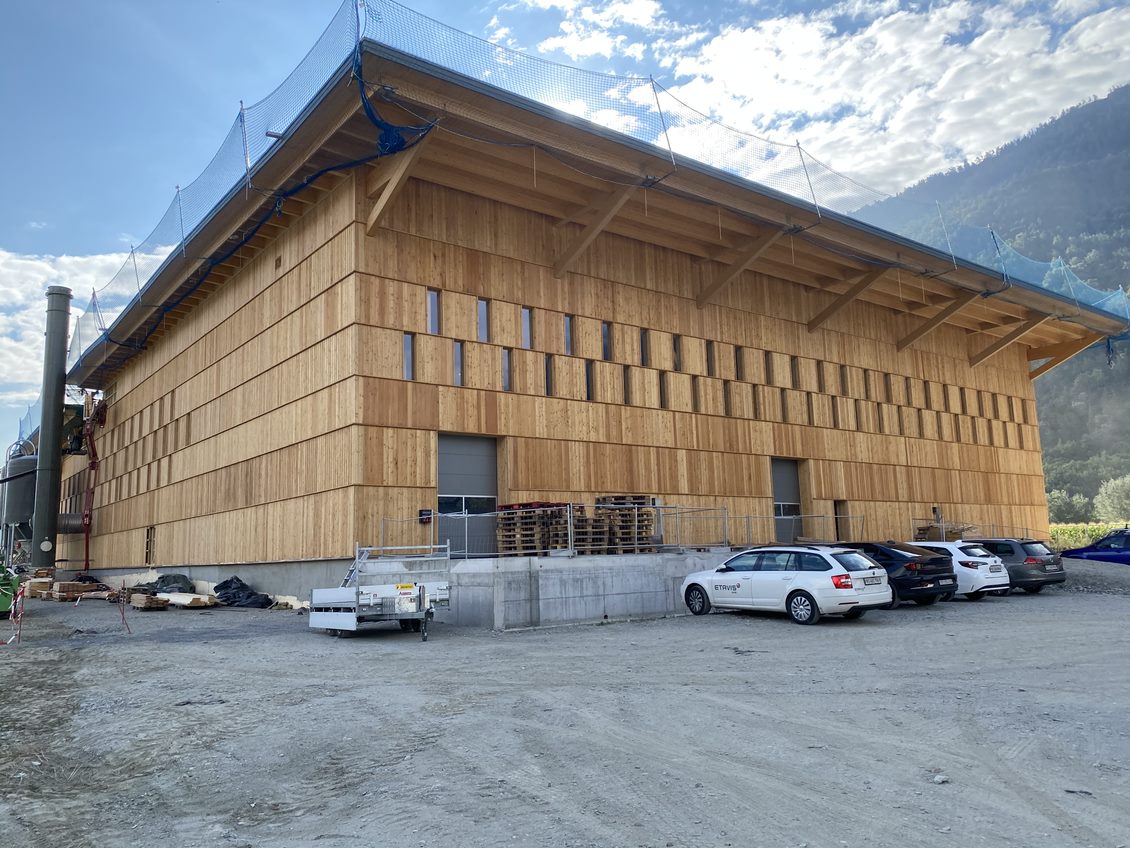 Mit einem Volumen von 32'000 m3 sei es die grösste Holzkonstruktion des Kantons Wallis, teilt die Migros mit. Den bisherigen Standort in Saillon (ebenfalls im Wallis) habe das Micarna-Tochterunternehmen Optisol wegen seiner Lage innerhalb des Überschwemmungsgebiets der Rhonekorrektur aufgeben müssen. Die Fassade aus Walliser Lärchenholz passt dazu, dass im Inneren des Neubaus ein «bedeutender nachhaltiger Verwertungsbeitrag für die Wertschöpfungskette Geflügel» geleistet wird, wie die Migros schreibt.
