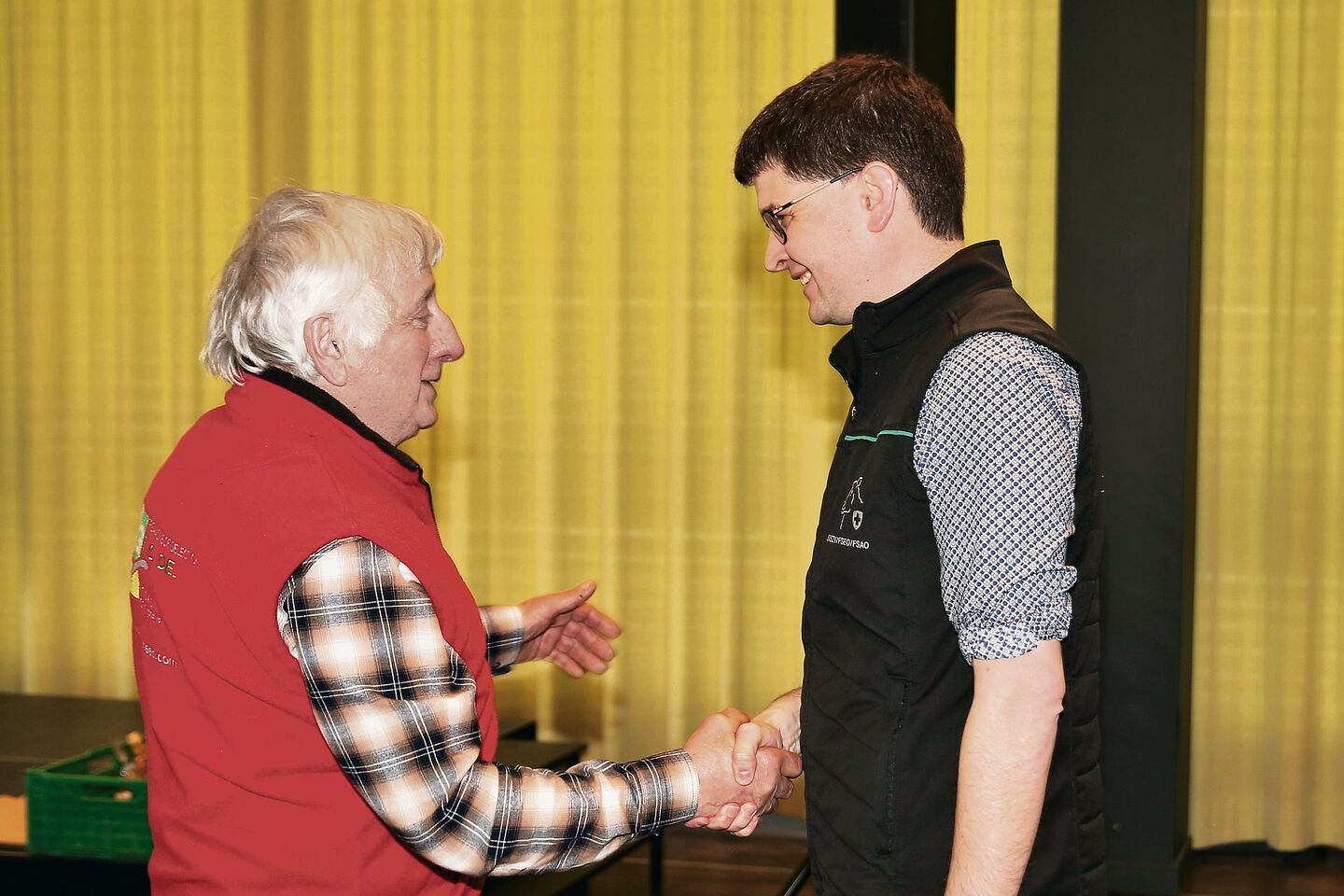 Neben dem Hauptthema LBE und dem Referat von Biologe und Wolfsexperte Marcel Züger standen die Ehrungen im Mittelpunkt. Vizepräsident Hans Pernet verabschiedete einerseits die drei erfahrenen Schafexperten Theo Fux, Embd VS, Théo Gerber, Lajoux JU, undFrançois Vogel, Vicques JU. Anderseits konnte er eine grosse Schar an langjährigen Zuchtbuchführern für ihre Verdienste rühmen.