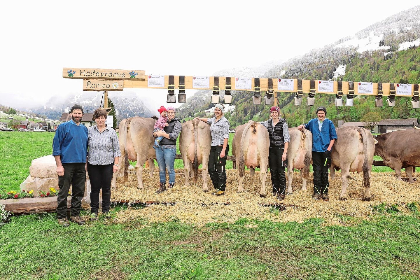 Familie Vreni und Ruedi Föhn, Muotathal präsentierte eine Halteprämie von ihrem Stier Reimo Romeo. Die 20 Nachkommen, darunter 16 euterstarke Kühe, gefielen. Die Halteprämie kam auf 57 Punkte (Innere Werte 10 Punkte, Exterieur 37 Punkte, Bemuskelung und Gesamteindruck je 5 Punkte). Die einzige Braunvieh-Halteprämie in der Zentralschweiz stellte Daniel Enz aus Giswil. Über 20 Nachkommen und der Stamm-Muni wurden ausgestellt.