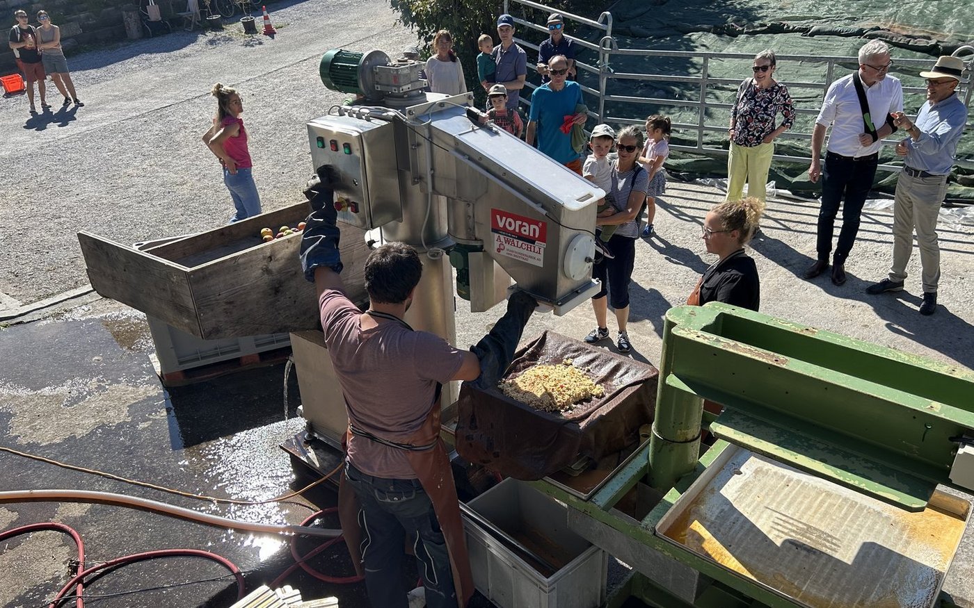An der Nahrungsmittelproduktion teilnehmen konnten auch die Familien und Kinder, als Pächter Jann Deflorin zusammen mit seiner Angestellten Eliana Josty am Aktionstag die Mostpresse bediente. Derweil führte Deflorins Partnerin Aline Tüfer durch den Hühnerstall und den Hofladen, wo man Eier kaufen konnte. Auch der kulinarische Genuss kam mit hofeigenen Produkten nicht zu kurz.
