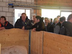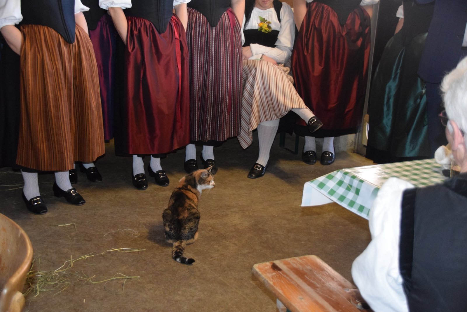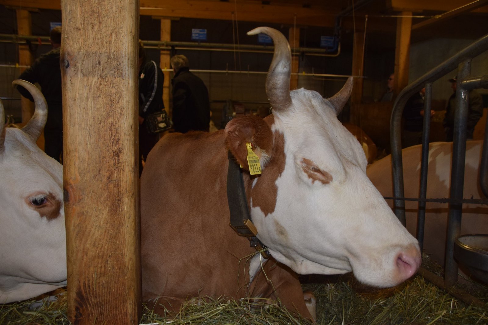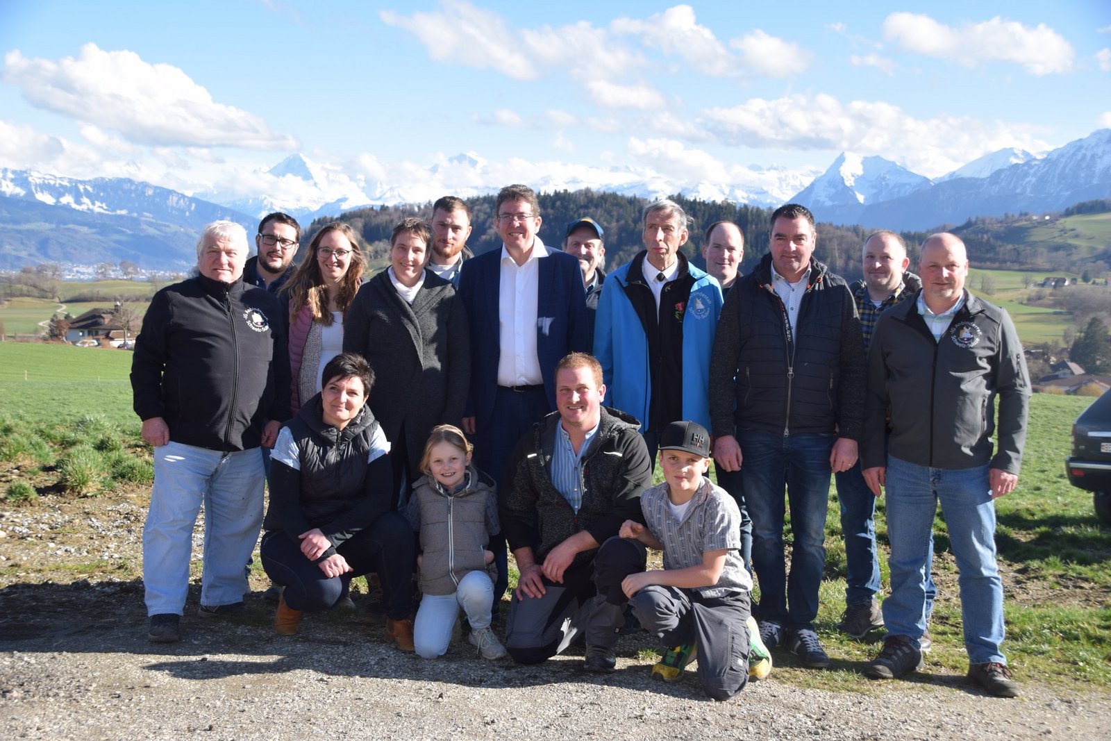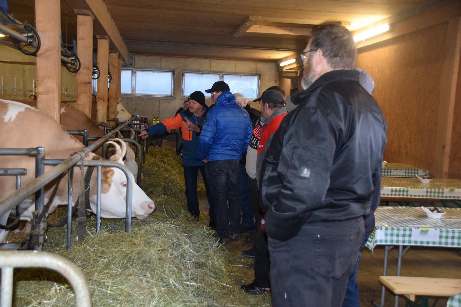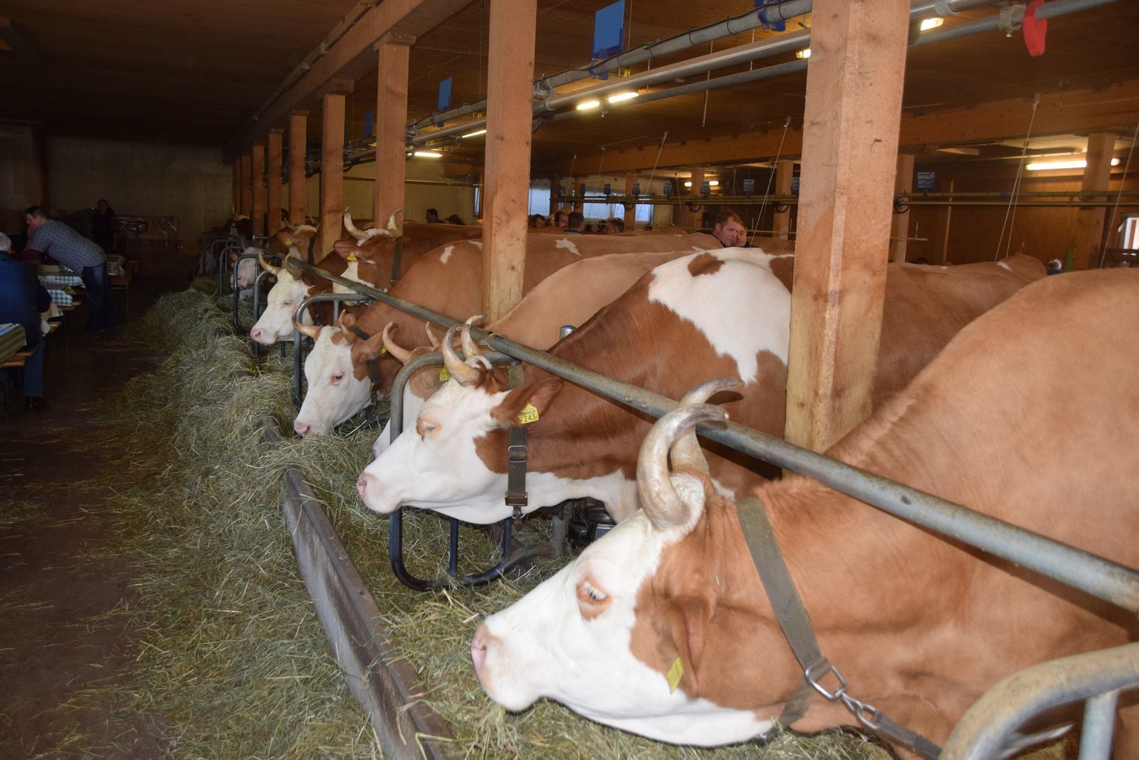 Am Nachmittag wurde der schöne Reinzuchtbetrieb von Roland und Brigitte Knutti in Riggisberg BE besucht. Auch Knutti hält seine Kühe in einem Anbindestall. Die Tiere sind in einem tadellosen Zustand, eingestreut in viel Stroh, fühlen sie sich sprichwörtlich «sauwohl». Auf dem Betrieb Knutti sprach auch der Bundesrat Albert Rösti zur Versammlung und gratulierte der IG zu ihrem Jubiläum. Und Rösti meinte noch: «Die Familie Knutti hat wunderschöne Kühe hier und ich habe früher zu Hause unseren Kühen auch noch die Schwänze gewaschen», sagte Rösti der Bauernsohn aus dem Berner Oberland lachend.