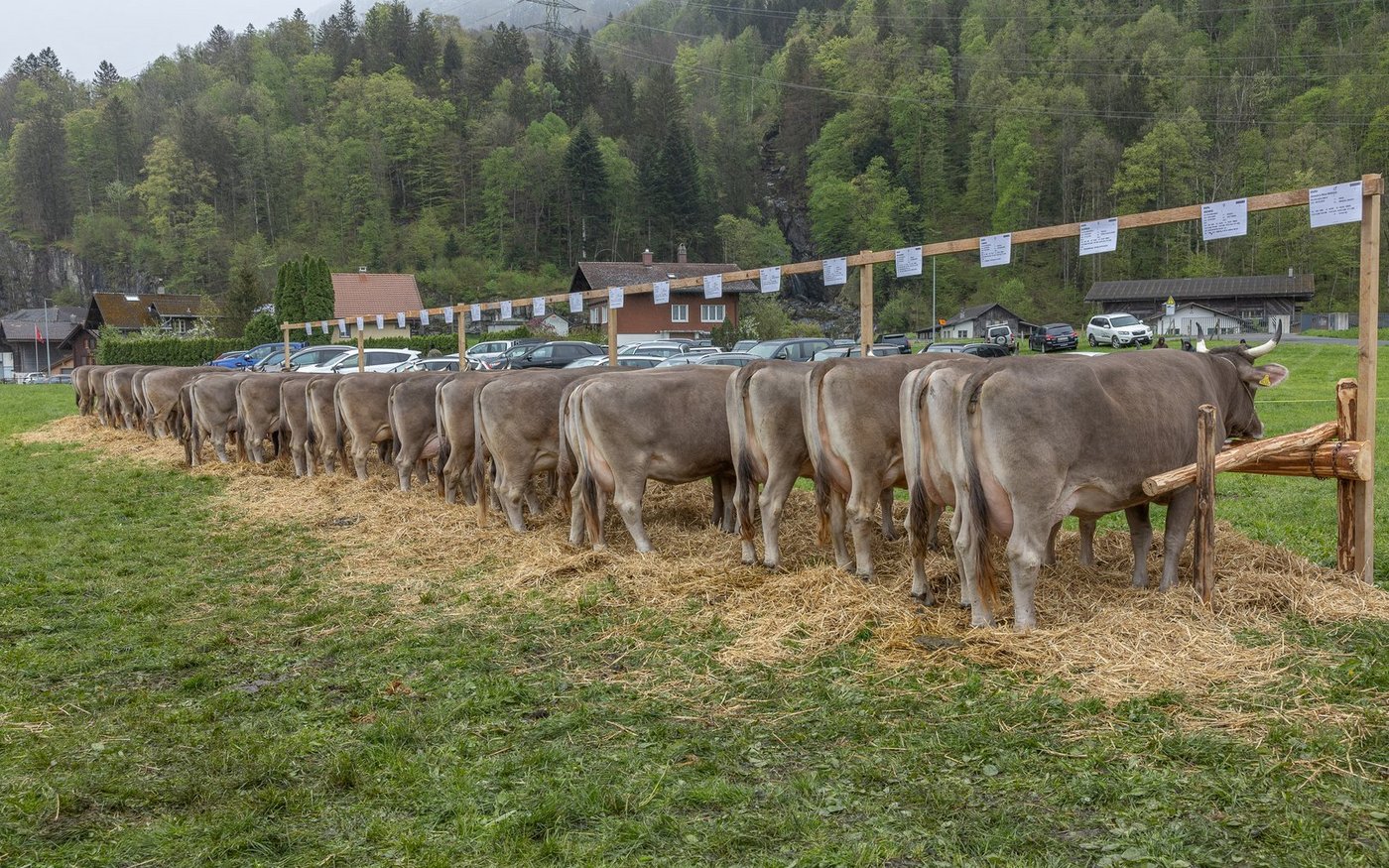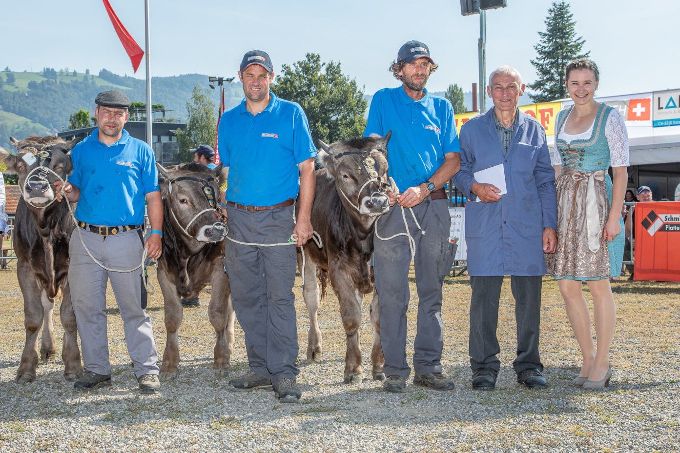 Einerseits zogen wir Jungstiere auf, die wir an den Stiermärkten in Zug und Sargans und auch privat verkauften. Das waren wohl gegen 200 Stiere. Andererseits hielten wir in dieser Zeit gemeinsam mit unserem Züchterkollegen Dres Anderegg auch immer eigene Zuchtstiere. Das waren nur rund zwölf Stiere, da wir mit diesen mehrheitlich bis ins hohe Alter arbeiteten.