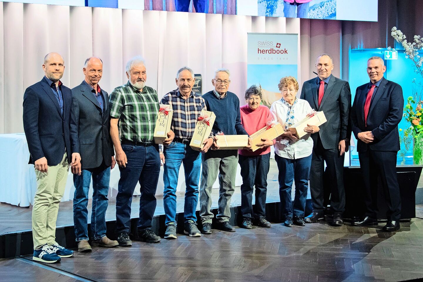 Mit Cédric Pradervand wurde ein neues Verwaltungsmitglied für den Wahlkreis 5 gewählt. Der 51-jährige Meisterlandwirt aus Grens VD folgt auf Olivier Chambaz, der gebührend verabschiedet wurde. Einen besonderen Moment erlebte die Versammlung bei der Ehrung von Matthias Schelling, dem langjährigen Direktor von Swissherdbook. Für sein Engagement im Dienst des Verbandes wurde er zum Ehrenmitglied ernannt. Ebenso wurden sechs Milchkontrolleurinnen und -kontrolleure ausgezeichnet, die seit einem halben Jahrhundert oder länger im Einsatz sind.