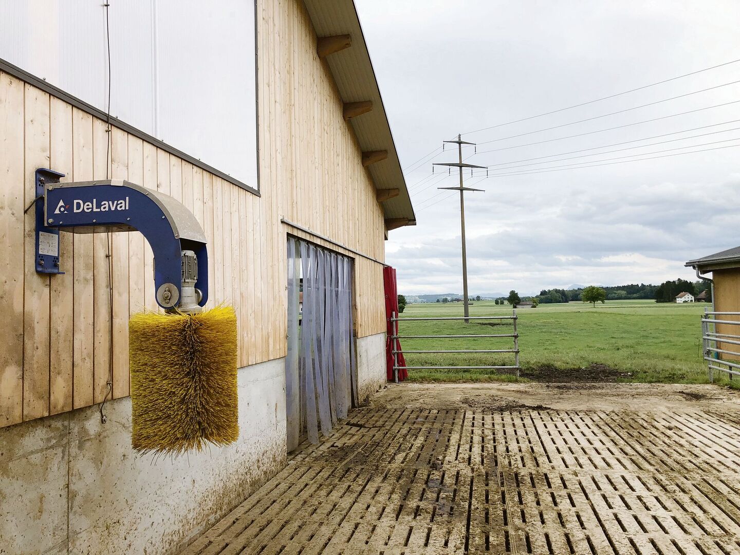 Zuvor wurden die gegen 40 Kühe (SF/Simmental) in einem 3er-Tandem-Melkstand gemolken. Sepp Kaufmann und sein Vater sind im Sommer häufig mit ihren Ballenpressen unterwegs. «Der Melkroboter brachte Ruhe in den Nachmittag», sagte Kaufmann. Und ruhiger sei auch die Herde. Bei Kontrollen oder auch beim Abmisten bringe man die Tiere nicht mehr aus der Ruhe.