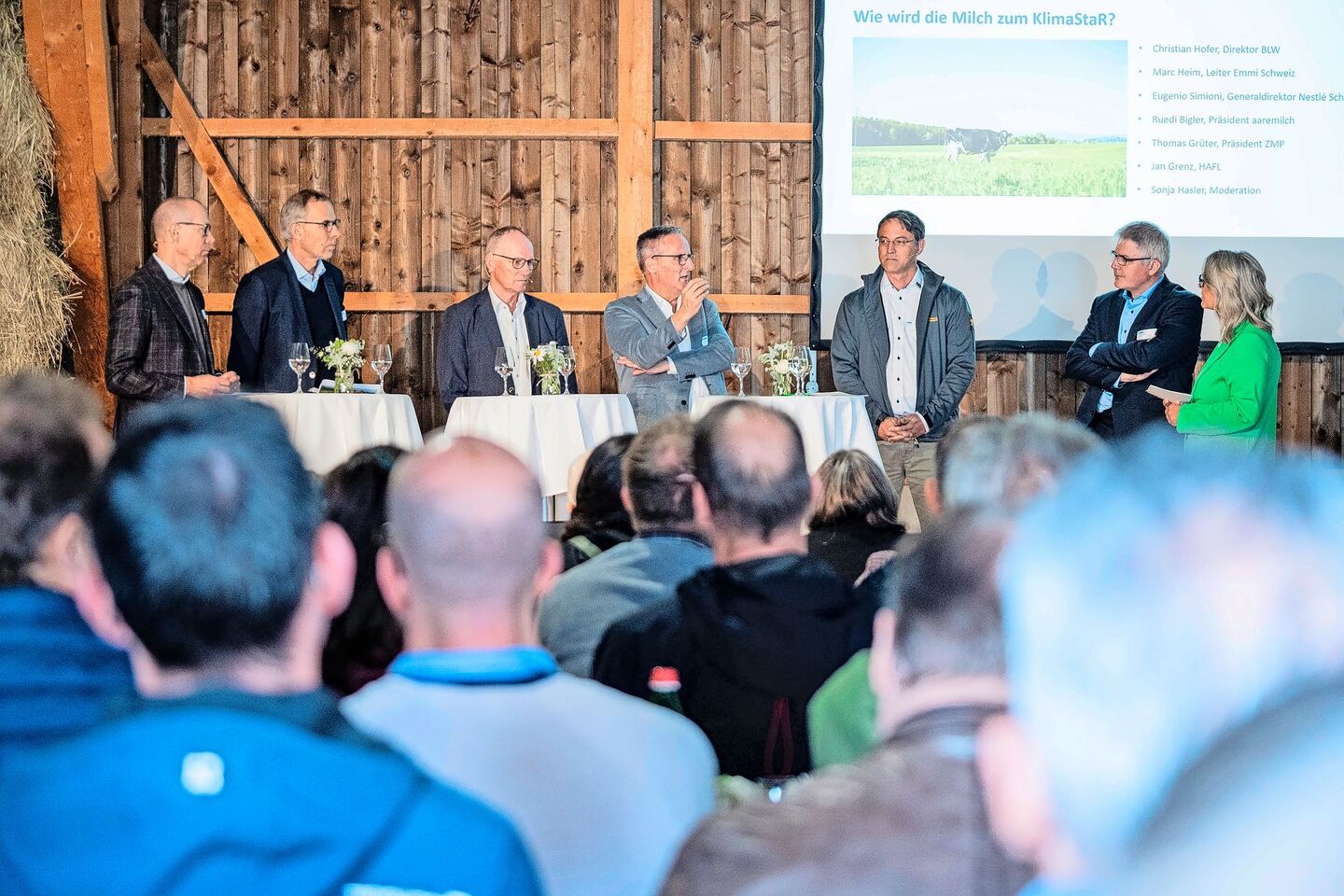 Aus dem Publikum kam der Appell an die versammelten Milchverarbeiter, die Ziele von Klimastar in Zukunft nicht zum Obligatorium zu machen, bei dem die Milchproduzenten auf den Kosten sitzen bleiben. Woraufhin Marc Heim, stellvertretender CEO von Emmi, erwiderte, dass die Branche auch für den Grünen Teppich weiter zahle – obwohl der mittlerweile obligatorisch sei.
