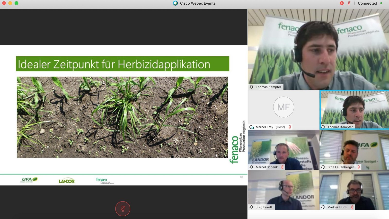 Die Berater von UFA-Samen, Landor (Düngung) und Fenaco Pflanzenschutz haben vom 27. bis 30. April ein sogenanntes Webinar, ein online geführtes Seminar, mit Live-Chat durchgeführt. Daran teilnehmen konnten Landwirte, die eine Einladung mit Zugangscode erhalten haben. Insgesamt hätten über 400 Landwirte an den digitalen Flurbegehungen teilgenommen.