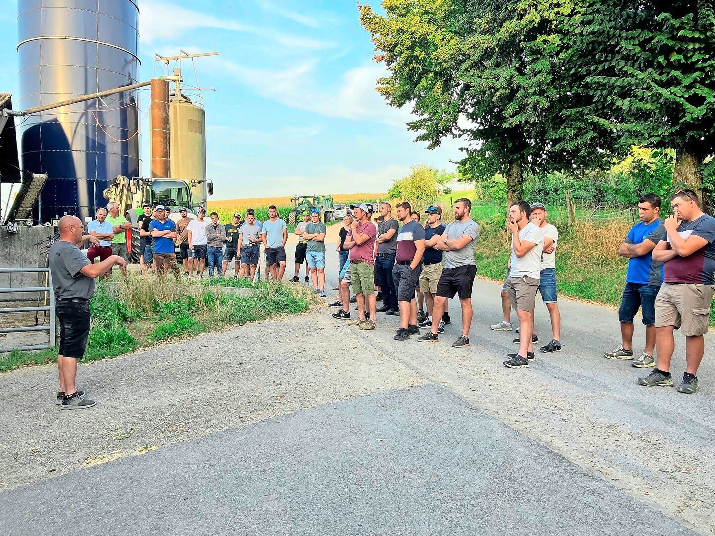 Zum Auftakt stellte Betriebsleiter Martin Uhlmann den vielseitigen Betrieb vor. Die BG Löhr besteht seit über 25 Jahren und hat sich stetig weiterentwickelt. Ein markanter Wendepunkt war das Jahr 2008, als die Milchviehhaltung aufgegeben und stattdessen ein Munimaststall errichtet wurde. Der Tretmiststall mit acht Prozent Gefälle bietet Platz für rund 100 Tiere, die in 25er-Gruppen gehalten werden. Einen Vormaststall gibt es nicht – die BG konzentriert sich vollständig auf die Ausmast von Fressern.