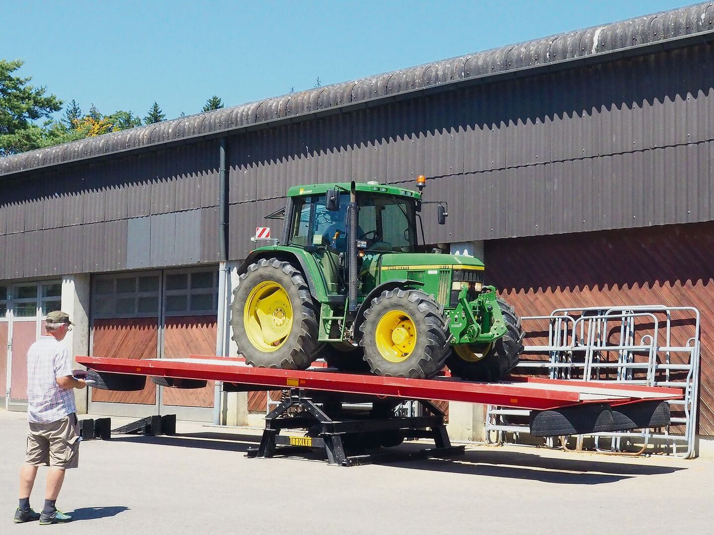 - Parcours 2: Die Aufgabe lautete, mit Traktor und angehängtem Frontmähwerk einen Parcours abzufahren. Dabei war geschicktes und genaues Fahren gefragt.