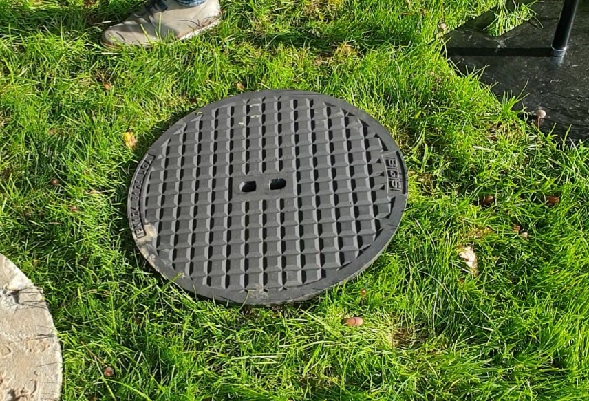 [IMG 3] Florian Sandrini zeigte im Freien, welche Anforderungen ein Schachtdeckel erfüllen muss. Schachtdeckel von Kontrollschächten auf landwirtschaftlichen Nutzflächen müssen doppelt verstärkt sein, damit sie der Überfahrt von schweren Maschinen wie beispielsweise einem Mähdrescher standhalten. Zu ersetzen sind sämtliche Schachtdeckel, die Löcher haben. Auch das Pikelloch eines Kontrollschachts muss verschlossen sein, damit es nicht zu Abdrift kommen kann.