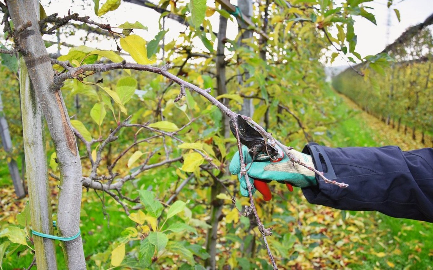 Ab November bis April steht wieder der Winterschnitt für Niederstamm-Obstbäume an. Idealerweise, wenn das gesamte Laub abgefallen ist, um erkennen zu können, wo Knospen gebildet wurden und wie die Triebe wachsen. Mit dem Schnitt sollte man es aber nicht übertreiben. Denn wird zu stark zurückgeschnitten, schiesst der Baum in die Höhe, anstatt Blüten und Früchte zu bilden. Nach einem Winterschnitt sollten sich noch etwa 200 bis 300 starke Knospen am Baum befinden für rund 100 bis 150 Früchte (inkl. Verlust durch Frost und nach der Qualitätsausdünnung im Frühjahr).