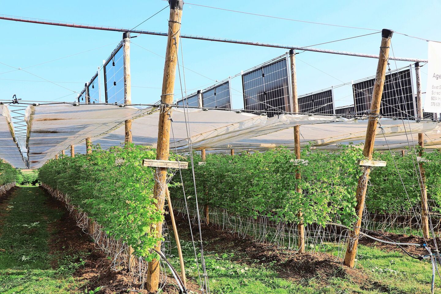Zu den Auswirkungen auf den Ertrag können noch keine gesicherten Aussagen gemacht werden. In Conthey VS führte Insolight mit Agroscope während dreier Jahre Vergleichsversuche unter verschiedenen Anbaubedingungen durch. In den Ergebnissen zeigte sich, dass der Ertrag von Jahr zu Jahr und auch je nach Sorte schwankt. Das Fruchtgewicht war häufig höher unter der Solaranlage. Die Himbeere erweist sich als ideal für diese kombinierte Produktion, da sie ursprünglich eine Waldpionierpflanze ist. Für Stein- oder Kernobst existieren noch keine Erfahrungen. Bei Aronia- und Heidelbeeren gäbe es vielversprechende Forschungsergebnisse. Beim Versuch mit Erdbeeren in der Pilotanlage von Agroscope in Conthey wiesen die Beeren im Frühling hingegen einen tieferen Zuckergehalt auf. Verfrühen sei in Kombination mit Solarproduktion kaum möglich.