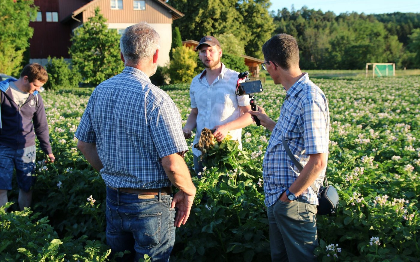 Die Kartoffelsorten Fenna und Acoustic sind sehr robust, so dass Krautfäule keine Chance hat. Sie gedeihen prächtig auf den Versuchsparzellen von Heinz Höneisen. Aber um Resistenzdurchbrüche zu vermeiden, braucht es gleichwohl Schutz.