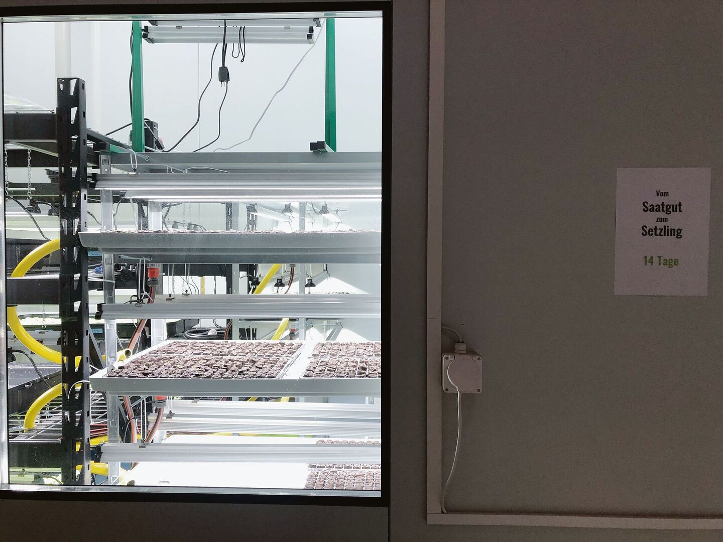 Das System, bei dem die Pflanzen in der Vertikalen wachsen und mittels LED-Leuchten, geschlossenem Bewässerungskreislauf sowie ausgeklügelter Klimatechnik zum Spriessen gebracht werden, hat Christian Gerig gekauft. «Die Knacknuss war die Hülle drum herum und die Abläufe.» Da steckt viel Eigenleistung von ihm und seinem Team drin. Vertical Farming braucht aber auch Kapital: 1,5 Millionen Franken haben seine Partner(innen) und er in die Anlage investiert. Weil es nicht seine erste Firma ist, hatte er Erfahrung bei der Mittelbeschaffung.