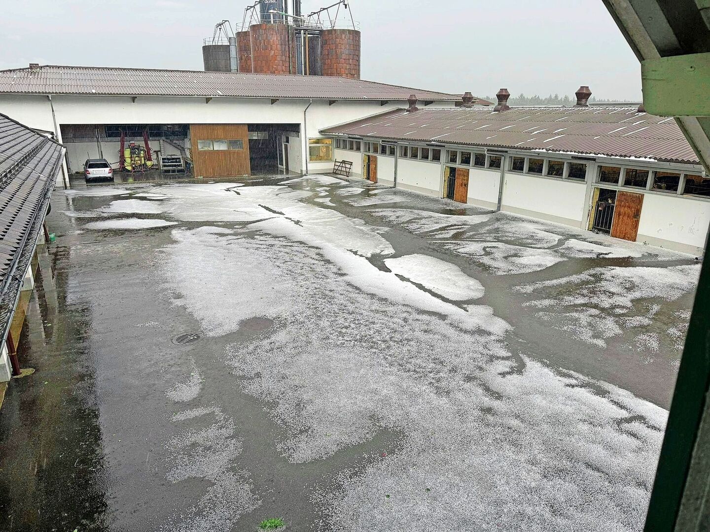 Einen solchen Hagelzug erlebte Landwirt und Swissbeef-Mittelland-Präsident Christian Glur aus Glashütten AG auf dem eigenen Betrieb: Am Mittwochmorgen um Punkt halb sieben zog das Unwetter direkt über seinen Munimastbetrieb. «Bislang wurden wir nur selten von Hagel getroffen – das letzte Mal liegt ungefähr zehn Jahre zurück. Doch dieser Hagelzug war der bisher heftigste», berichtet Glur. Die Schäden traten sehr punktuell auf. Während der Betrieb mit Hagelkörnern übersät wurde, sei 200 Meter links und rechts nichts gewesen. Nach ersten Einschätzungen verursachte der Hagel Schäden am Silomais und Brotweizen. «Beim Weizen sind teilweise alle Blätter abgerissen. Nur noch die Ähren ragen oben aus den Stängeln», berichtet der Landwirt. Auch der Silomais wurde teils erheblich in Mitleidenschaft gezogen.