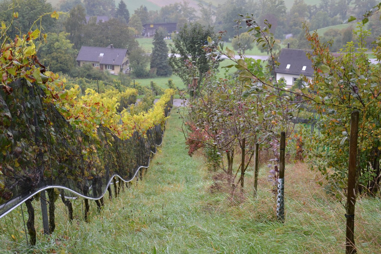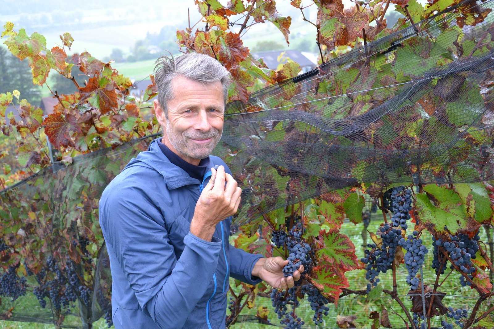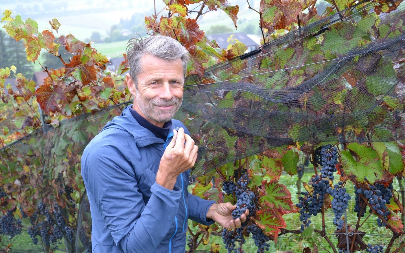 Im Jahr darauf, 1999, folgte das «Jahr ohne Sommer». «Wir haben die Pelerine praktisch nur noch zum Schlafen abgelegt», erinnert sich Roland Lenz. Auf 5 ha erlitt er Totalausfall, der Pflanzenschutz versagte bei den empfindlichen Rebsorten Müller-Thurgau und Pinot Noir. Die übrigen Reben – pilzwiderstandsfähige (Piwi-) Sorten – präsentierten sich hingehen gesund und wunderschön. «Die Piwi-Flächen haben uns gerettet», meint der Winzer aus Uesslingen TG. Seither pflanzt er keine europäischen Traubensorten mit klingenden Namen mehr, er setzt bei der Erneuerung von Parzellen ausschliesslich auf krankheitsrobuste Piwi.