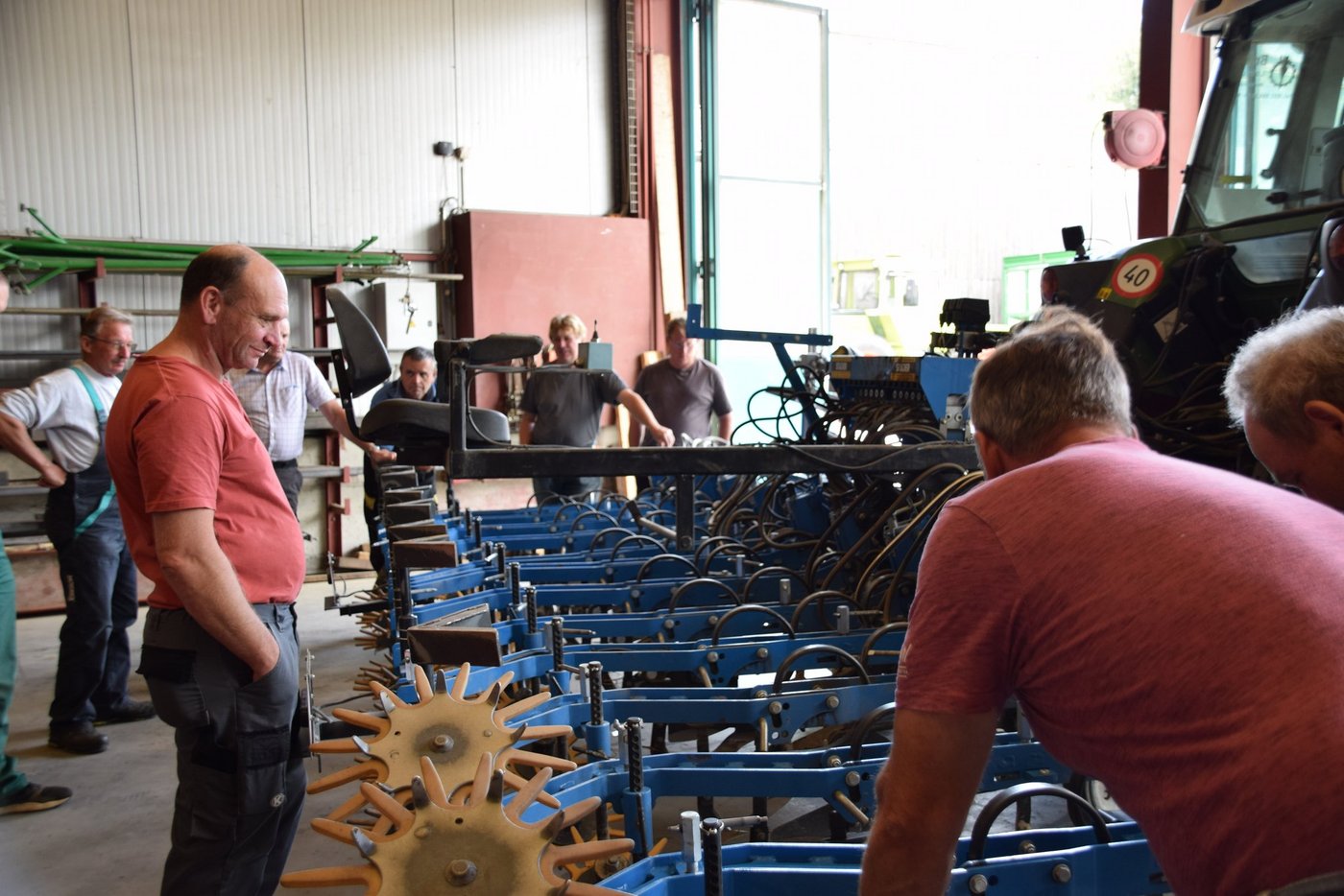 Der Lohnunternehmer Ueli Brauen aus Suberg war trotz den schwierigen Aussichten im Bio-Zuckerrübenbau überzeugt, dass mit der richtigen Technik ertragreiche Bioware produziert werden könne. Er rief dazu auf, den Schritt in Richtung Bio-Zuckerrüben zu wagen. In seiner Werkstatt stellte er dann der Gruppe unter anderem das Hackgerät von Carré vor. Bereits im Vierblattstadium hackte er die Bio-Zuckerrüben mit den Fingerhacken und machte auch mit hohen Tempi von 8km/h gute Erfahrungen damit.