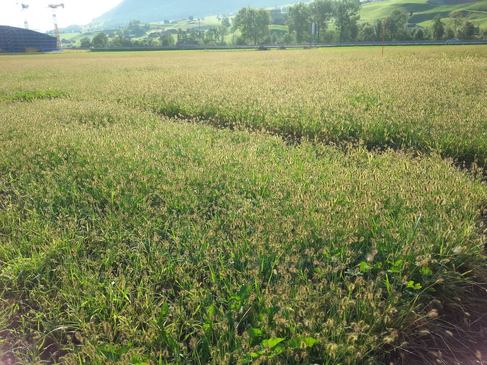 Weder Schnittintervall noch Herbizideinsatz hatten eine einen Einfluss auf den Braunhisrebefall. Wächst das Ungras eher in Nestern als flächig, hat sich das Ausreissen von Hand bewährt. Anschliessend kann, ebenfalls von Hand, die Lücke wieder übersät werden.