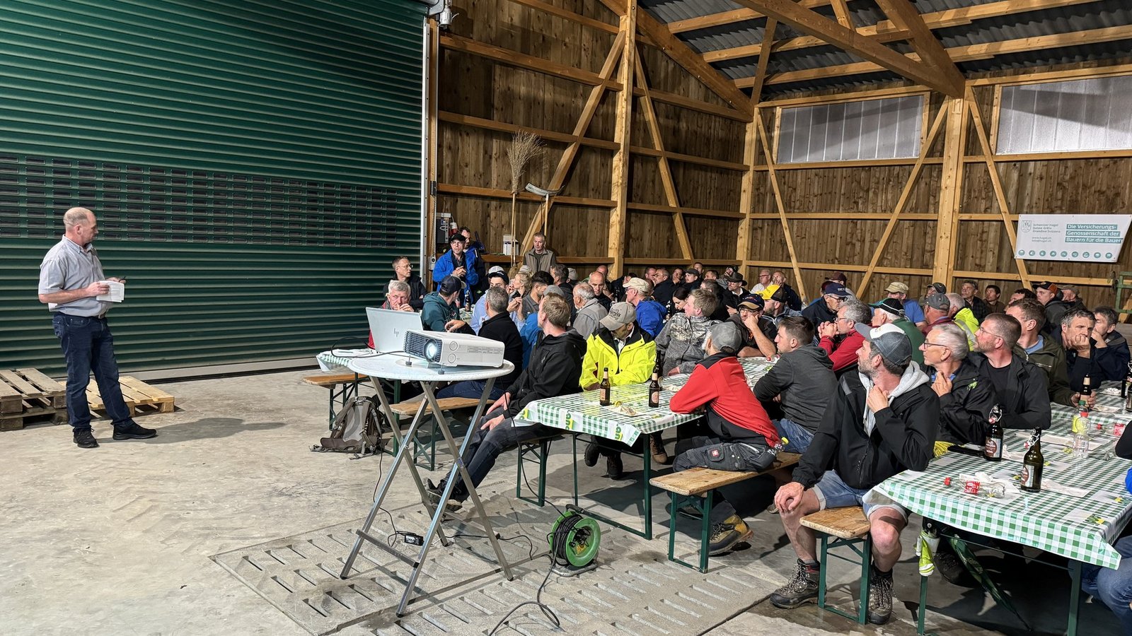 Diese verliessen das Feld dann allmählich Richtung Scheune, neben Getränken und Verpflegung gab es hier noch Kommunikation zu Barto sowie Vorernteinformationen der Getreide Mittelthurgau.