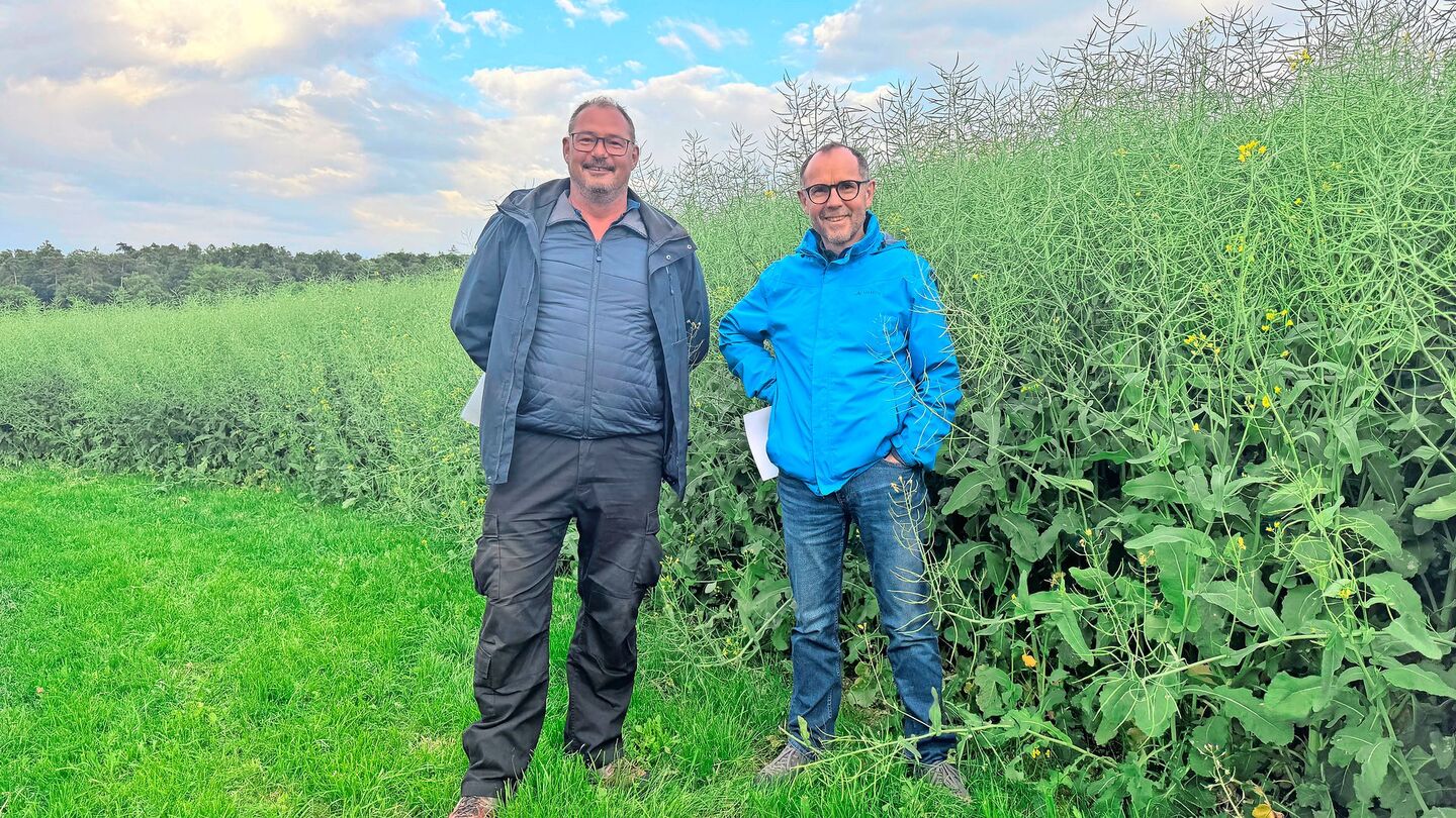 «Ich bin 1 Meter 90 gross und normalerweise sehe ich über ein Rapsfeld. Hier brauche ich aber noch mindestens 30 Zentimeter» sagt Markus Richner, Berater bei Landor, während er vor dem Raps-Versuchsfeld steht.