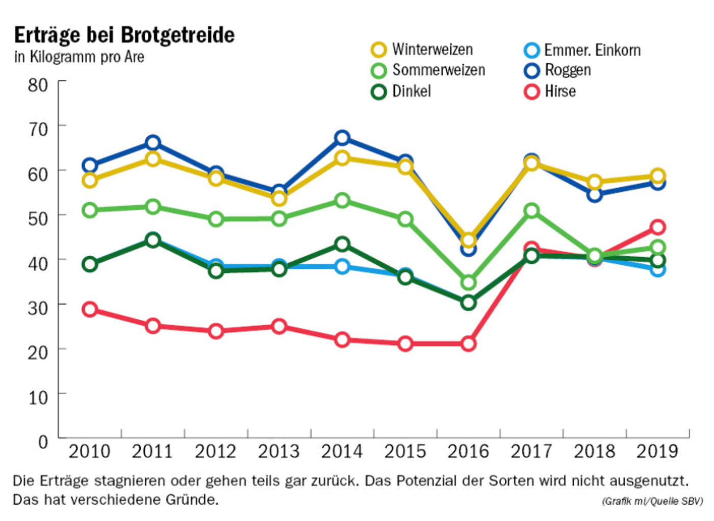 Ein Blick auf die Erträge der letzten Jahre zeigt, dass keine bemerkenswerten Ertragssteigerungen erzielt werden konnten, im Gegenteil. Die Durchschnittserträge sind seit Jahren konstant bis abnehmend.